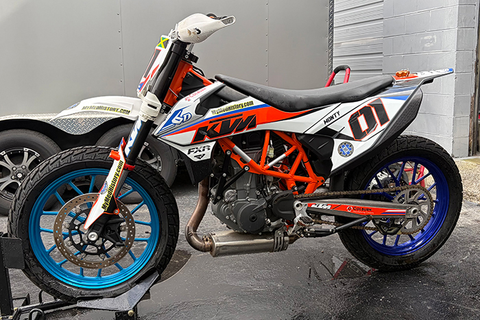 Exhaust, Sun Rims 2.75 rear and 2.15 front, Motion Pro Rev2 throttle.
