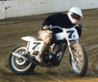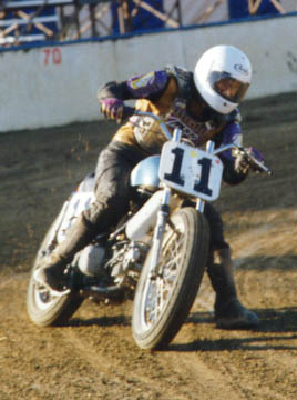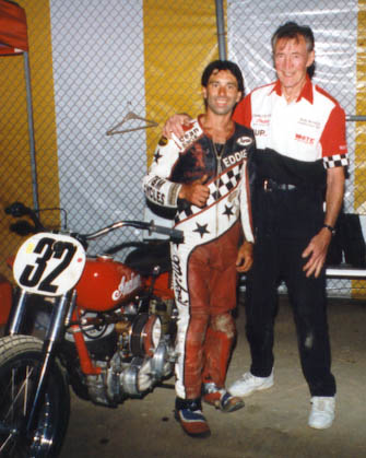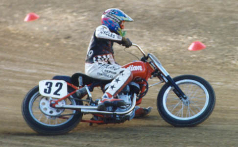 Eddie Castro on Bob Nichols beautiful 1940 Indian flat tracker