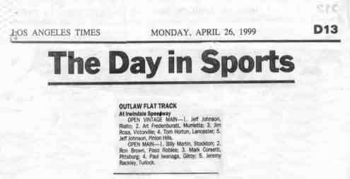 A flat track race made the L. A Times! Wrong Track, but right riders.