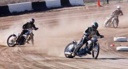 Jeff Johnson's sputtering Triumph leads Vet race.