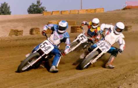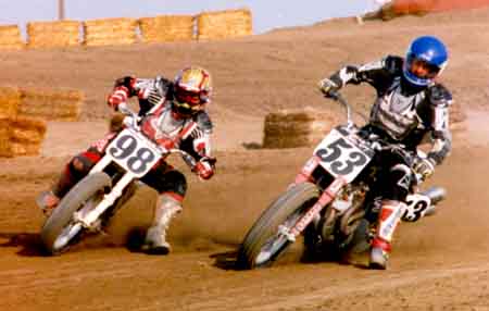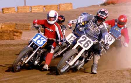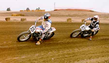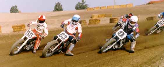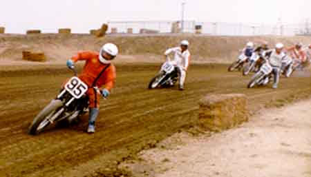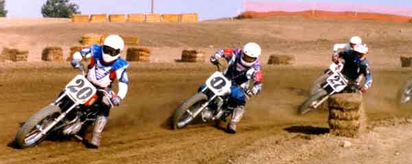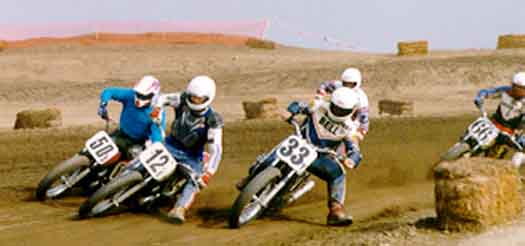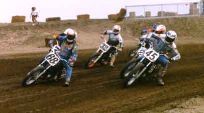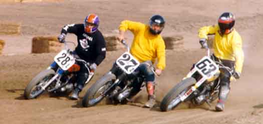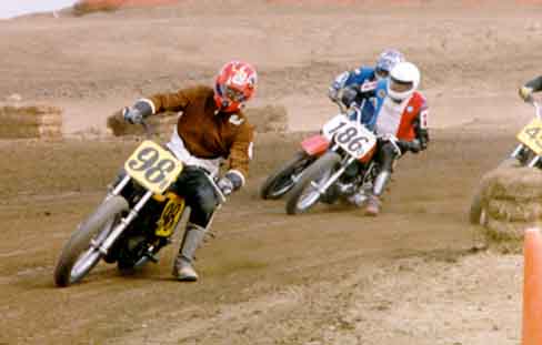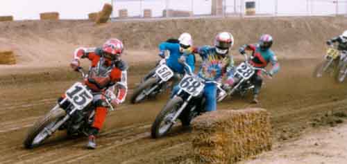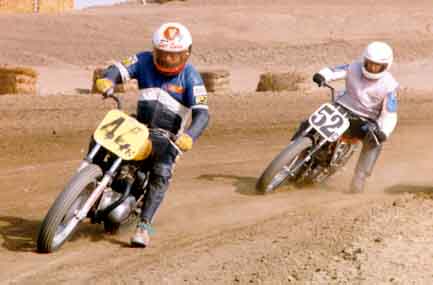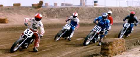 The last week end of AHRMA's western regional flat track series was held at the site that began the resurgence of vintage flat track racing in Southern California. The Monger family has been promoting AHRMA racing since 1992 at their track on Tulare city property. The field of 135 entrants started the days main event racing with the Super Seniors class. Triumph riders Micky Alzola and Duane Spence swapped the lead numerous times on the quarter mile cushion oval, but Alzolas inside move out of four fell just short at the checker. Sam Grey finished third on a Honda. A new bike and rider dominated the Classic 500/750 class. Robert Cunningham from San Mateo, on a CB Honda twin, rode away from Chris Rudy's 750 Harley. Jeff Apple, on a Sprint, was third.