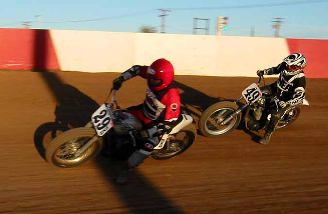 Rosa and Travis Petton side by side. Going down the backstraight Jim Rosa