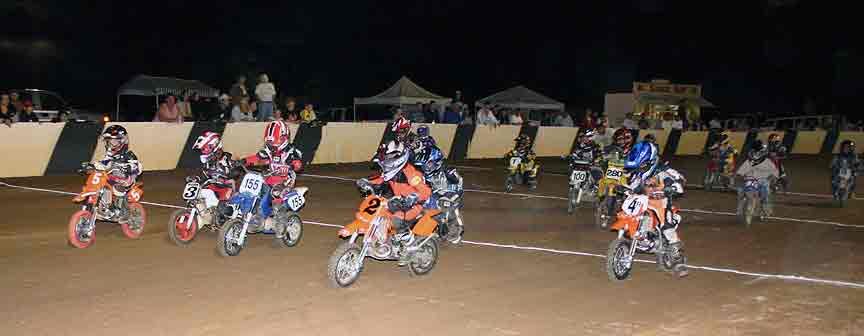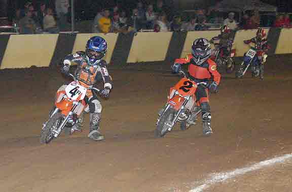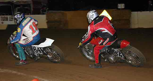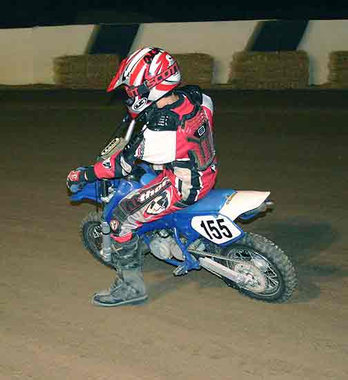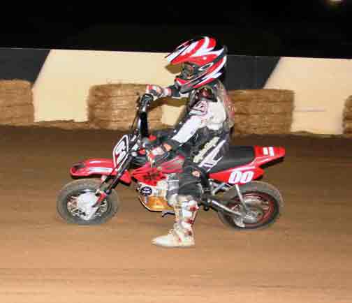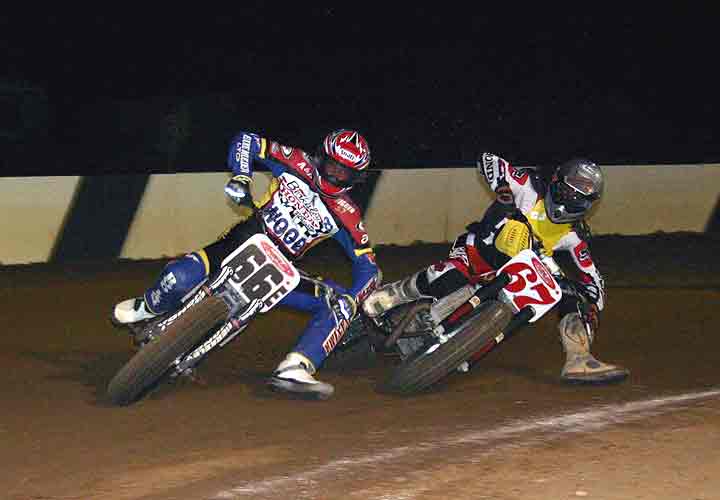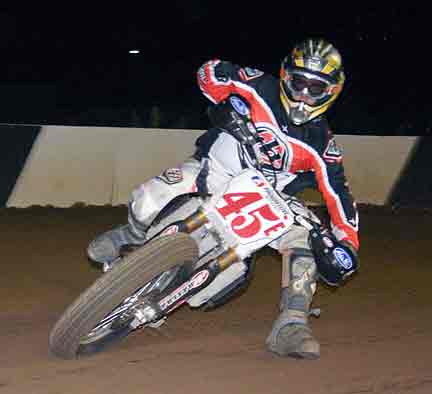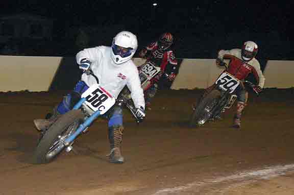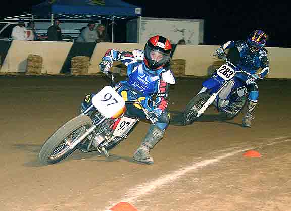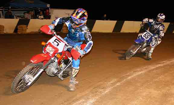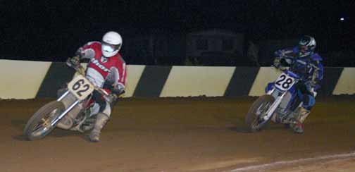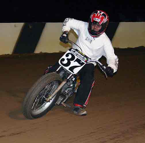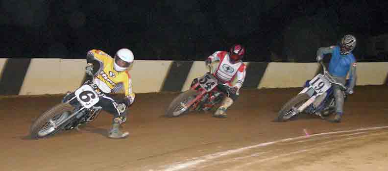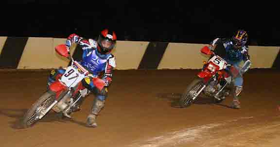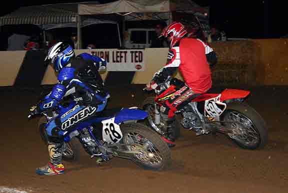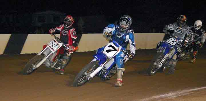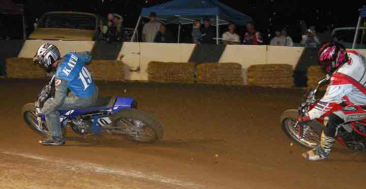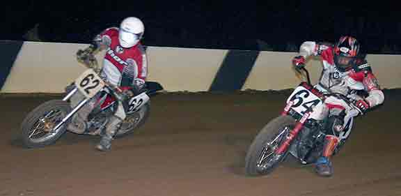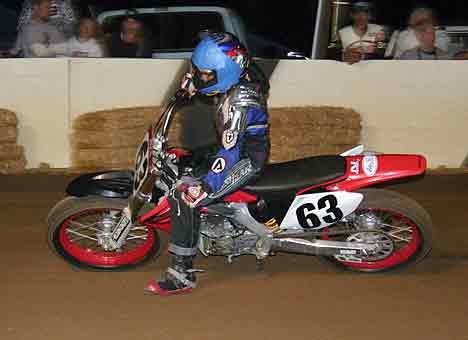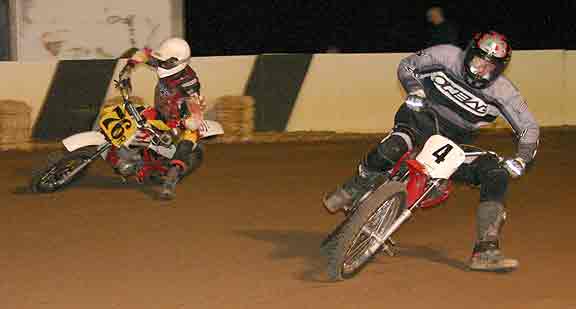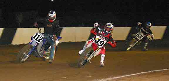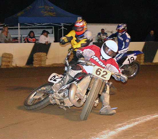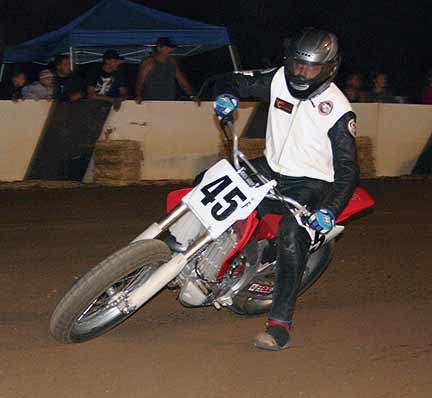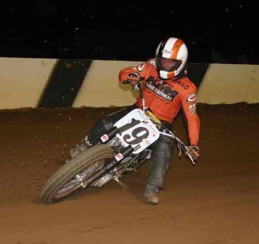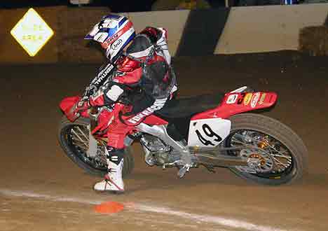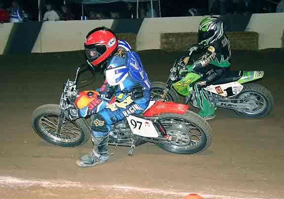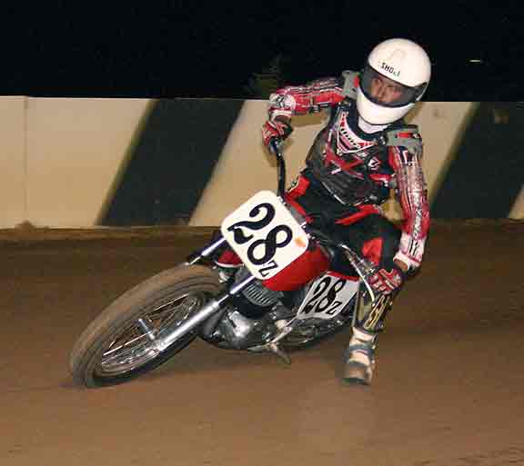 The strongest Wood found in Perris on this night came in the form of Jimmy, (cousins) Alex and Andy. Andy kicked things off looking better with every ride, winning the "Open Amateur" main aboard his Southland Honda. While the battle for the biggest chunk of the $1,300 was the "Pro Main" where Jimmy and Alex went at it, Jimmy one of the fastest dirt trackers to come out of the west was hounded by his cousin lap after lap. Jimmy like rare Mahogany stretched out his lead with every lap aboard his Ron Wood framed Honda. While Alex, improving at every race held a secure second over Joe Steffen, Joel Kath, and Elliott Iverson. Jimmy Wood leaves Perris not only with the biggest part of the purse, but also is the track record holder as well. I believe this brings his total of records to six. An end of the year Bar B Q and awards ceremony coming in January is planned according to Bruce Sanford.