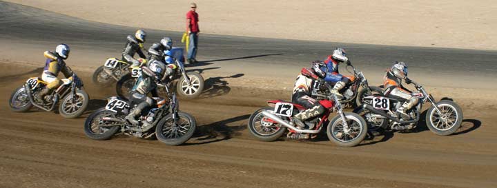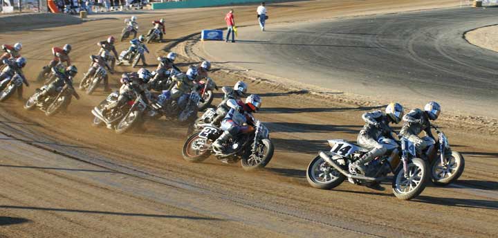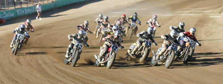 and Jared Mees all hit turn one side by side as the thundering roar from the