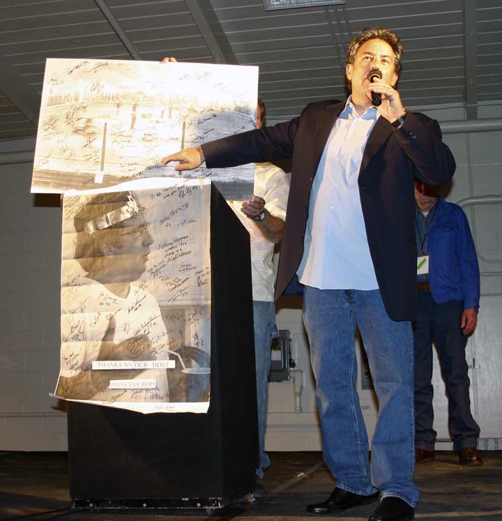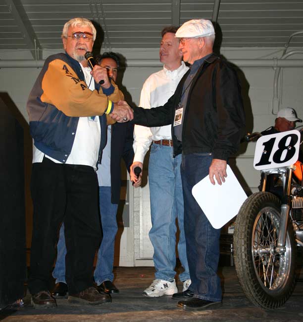 Rod congradulates Bud Martin for being Rods first sponsor. Bud was unaware at the time.