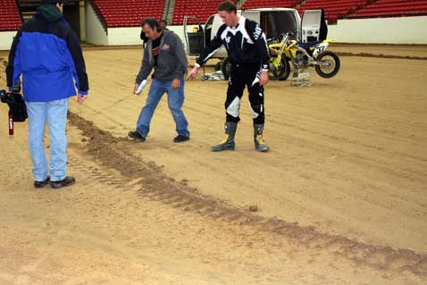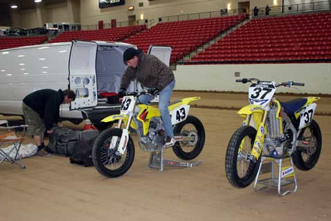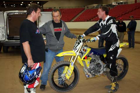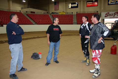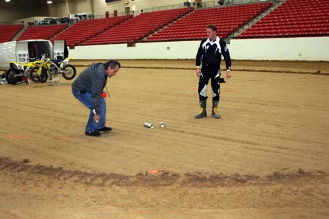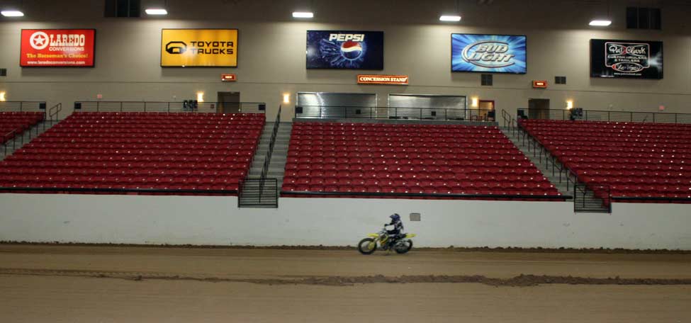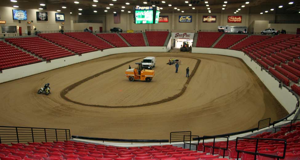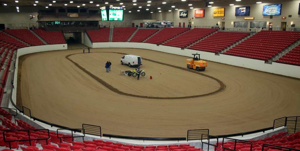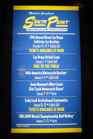 ![]() On Wednesday, December 17th, Gene Romero invited Jimmy Wood and Steve West to test the dirt and track configuration at South Point Casinos Equestrian Center, were WCFTS will hold races January 9th and 10th. The races are being held in conjunction with Mid America Motorcycle Auctions. I made room reservations for the race dates and asked for and received a 30% discount that is being advertised in the local paper. I think there is a very good chance that South Point will sell out as the lower level rooms are already gone. Resevations are at 866-791-7626. dennis vft     ![]() ![]()      ![]() ![]() ![]()      ![]() Jimmy sugested a change in the track and the new layout proved A-OK. The length is 170 feet inside at pole and 60 feet wide. Jimmy was turning about 11 seconds.       ![]() Bill Holbrook, Equestrian Center manager, Gene, Jimmy and Steve. ![]() ![]()      ![]() Drive-in sign up.      ![]() Sign up and pay out window. From pits to arena. ![]() The Pits! This dirt will be packed tight. More space available under stands if needed. After the test ride, I was not able to drive the 60 miles west to my home in Pahrump. Gene, and Jimmy and Steve also were not able to drive to LA as Interstate 15 was closed at Mt. Pass.      ![]() Wednesday test day, snow in Las Vegas.    ![]() Lobby sign at South Point. Thursday morning at South Point. ![]() Thursday morning on my way home to Pahrump.      ![]() See you at the races! dennis vft ![]() ![]()  |