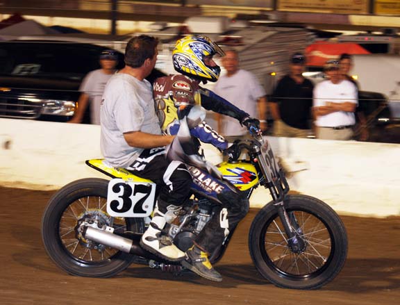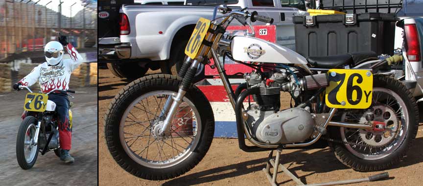 Jeff rides the Tony Denius Triumph on a memorial lap. This bike held quick time at Ascot for many years.