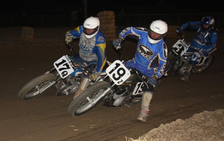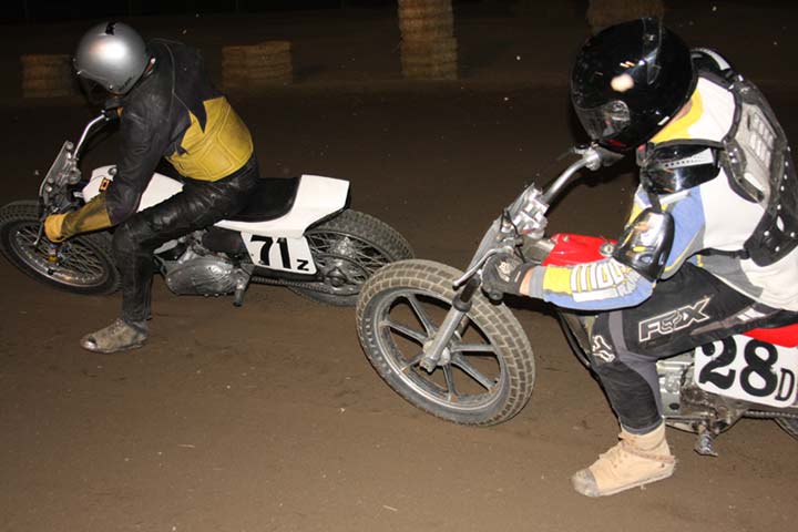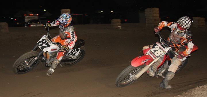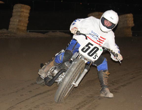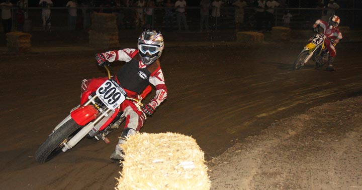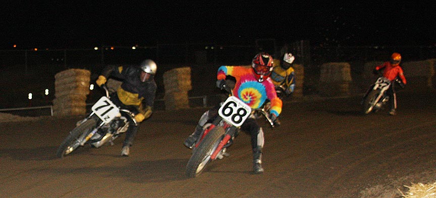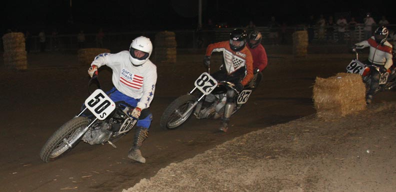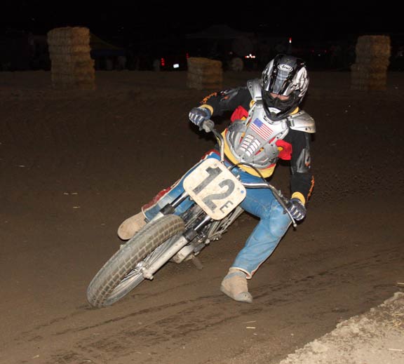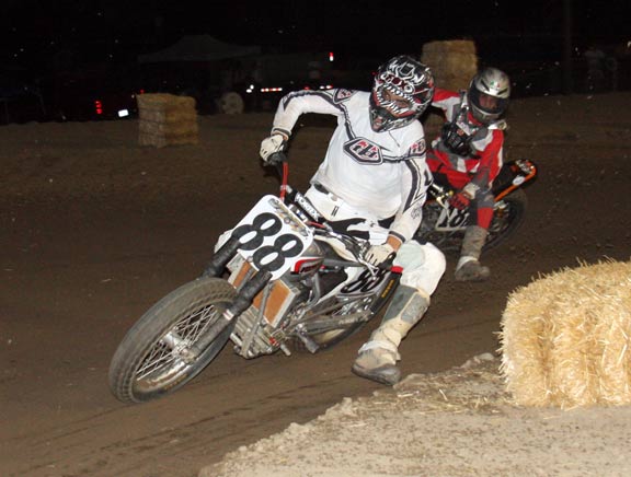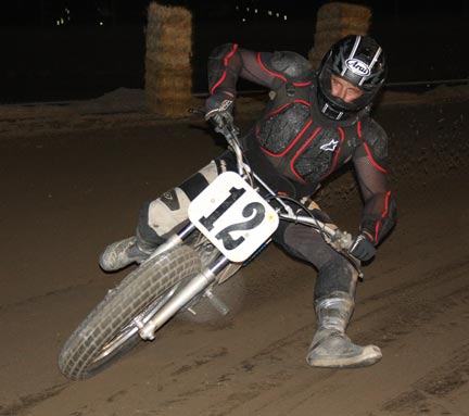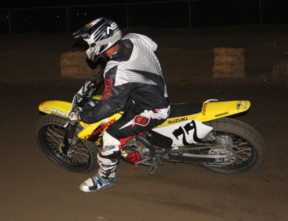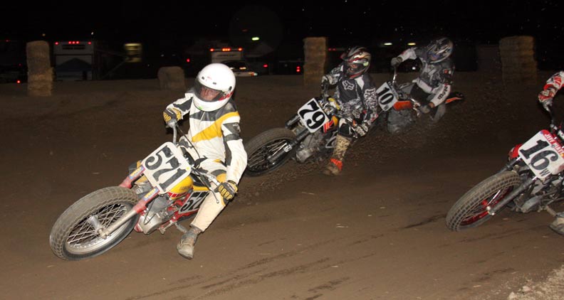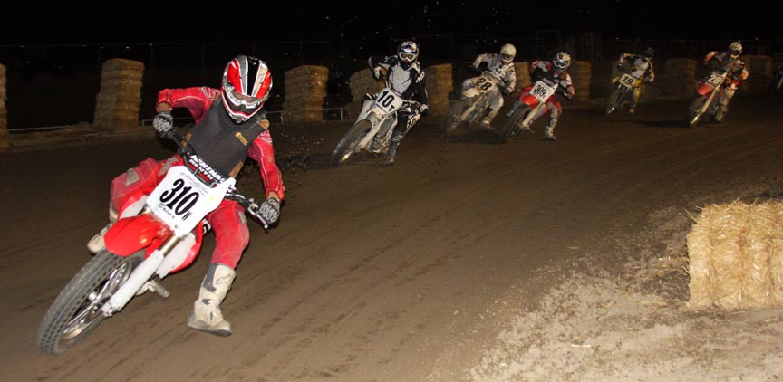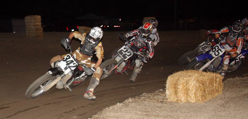 and fourteen main events. As long as your motorcycle was made prior to 1975 it is eligible for the Motion Pro/Barnett Senior class. Riders though must be fifty years of age, minimum. Jeff Lessley chose a Bultaco as his mount while Bob Scally picked a triumph twin. Lessley lead from the start with Scally close behind and Ron Lessley, Steve Craft, and Ron Alexander all playing catch up. Scally showed Lessley a wheel a few times in the opening laps but by lap four looked to have settled for second. Craft meanwhile pressured Ron Lessley into a mistake allowing him to move into third. The order would stay Jeff Lessley, Scally, Craft, Ron Lessley and Alexander to the finish. Nineteen riders made up the Maxxis Tires/A&A Racing Vet field with just eight transferring to the "A" main. Fastest heat race winner Mike Besmer sat on pole and launched into the lead off the line. Jeff Hiatt from Everett, Washington ran second with Steve Hill making a stellar move from fifth to third before the end of the first lap. Tony Harrell and Wes Powell were going at it for the fourth place position while Mike O'Neil who was buried off the start, sat back in sixth. At the front Besmer put his head down, turned a 13.92/100 second lap that no one could match and moved on to another time zone. Hiatt was pretty much alone in second, but Hill had Powell who had taken over fourth from Harrell to contend with. Powell was putting crushing pressure on Hill, but Hill never wavered and didn't give Powell any opportunity for a pass. While O'Neil was up to Harrell and now fighting for fifth as time was running out. At the checkered flag Besmer won with a four second gap Hiatt was a lone second with Hill holding Powell off for third, Harrell fifth and O'Neil sixth. Joe Brown is the guy to beat in the JRC Engineering/Brown's Cycles Super Senior/Senior Novice Class. Brown aboard his 250cc two stroke Yamaha didn't disappoint as he lead into turn one followed by Herb Wolff, Steve Baker, Dave Cheney, eighty four year old Bob Harris, and Chuck Walton. Wolff showed Brown a wheel in turn three on the second lap which only made Brown pick up his pace. By the end of lap three Brown with Wolff glued to him had put a full straight gap on the rest of the field. In spite of his smaller displaced machine Brown kept increasing his pace until he shook Wolff, and with two and a half laps remaining Brown was into lappers. As they finished the order was Brown, Wolff, Cheney, Harris, and Walton, as for Baker, a DNF. The Bartels H-D/Megacycle Cams Classic 250, 500, & Dino field was a museum quality race with some very expensive equipment on the race track. All of which ran together but were scored separately according to displacement and age, Brad Holt on one of the most potent H-D Sprints ever seen couldn't have gotten a better start if he would have paid starter Fred Allen's kids tuition to college. Chris Rudy on the H-D KR-750 machine ran second with Jack Alexander, Roy Taboada, Mike O'Neil, John Frank and James Kohls. With three laps in the books Holt had opened up a three second gap at the front and posted a 15.39/100 second lap that no one could match. With two to go Taboada took third away from Alexander, who now also had O'Neil to deal with. At the stripe Holt put his stamp on it with Rudy a solid second. Taboada held third, with Alexander fourth, O'Neil fifth, Frank sixth, and Kohls seventh. The San Diego off Road Youth classes are the future of the sport, one rising star to come out of the 50cc class is A J Alves. Not only is he the current series point's leader in the class, but took the main event victory in convincing style on his Cobra. Colton Stanley and Hunter Stanley rode as hard as they could but when it was all said and done Alves was the class of the field on this day. The rough and tumble AGV Helmets/Vizzo Racing 500 Support class is always one to watch as most of the equipment is evenly matched. Mike O'Neil pulled yet another of his patented starts to lead into turn one. Jeff Hiatt, Jeff Gonzales, and Mike Gonzales all dropped in behind. On the exit from turn two on the second lap Mike Gonzales took third away from Jeff Gonzales while Joey Alves ran in fifth. At the front O'Neil was in protection mode as Hiatt was pressuring for a way around. By lap five Mike Gonzales was gone from the race and Hiatt made his move on the exit from turn two pushing O'Neil wide to take over at the front. The order would be set from this point on to the finish with Hiatt victorious, O'Neil second, Jeff Gonzales third, Alves fourth, and Bob Monaco moving up to fifth. The talent pool is deep in the Rod Lake Racing/K&N Filters Open Amateur class. At the start Jesse Sleeper was the quickest and led through turns one and two, Eric England settled in at second and Dillon Allen showing signs of his past speed ran third. Ross Gallaher was away in fourth with Tony Davila charging hard up to fifth from a poor start by the end of the first lap. By two laps completed Davila had moved up a spot to fourth while Zach Lenhof ran sixth with Lindsey King making her way up to seventh. On lap six Sleeper ran wide on the exit from turn four which allowed England to get a wheel under Sleeper going into turn one, thus giving England the lead by being in the right place at the right time. Sleeper came back at England down the back straight only to have England right by his side as they crossed the stripe for the white flag. England took the lead through one and two and held it to the checkered, Sleeper had to settle for a close second with Allen all alone in third, Davila fourth, Gallaher fifth, Lenhof sixth, and King seventh. The Digger Helm Open Pro twenty lap final had fifteen riders staged through three rows as starter Fred Allen waved the green flag. Garrett Stout nailed the start to lead with Jared Mees in tow only to find the red flag waving as they came to the stripe for the first time indicating a full restart. This time Henry Wiles lead the field into turn one o