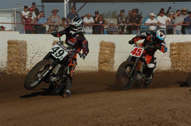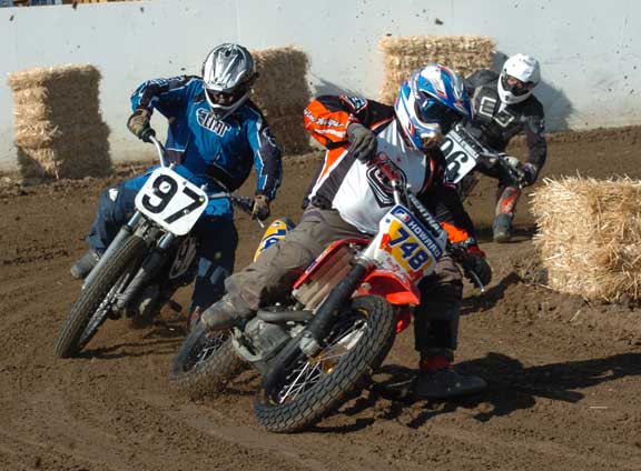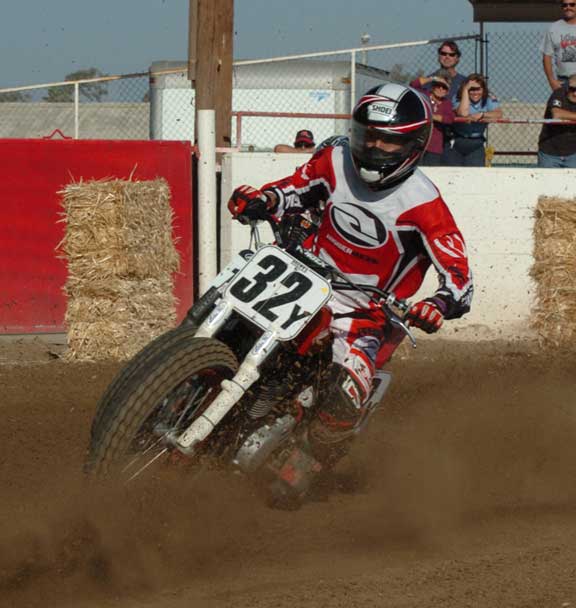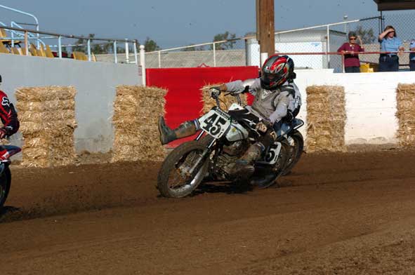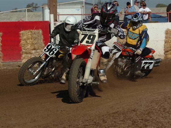 starting line into the lead followed by  Eight riders made up the Motion Pro/Tuffplates Senior final. As starter Fred Allen waved them off Bultaco mounted Jeff Lessley lead only to have Ken Thiebaud making one of his rare appearances shoot past on the exit from turn two. Steve Craft, Ron Lessley, Ron Alexander, Patrick Hayes Merritt Moore and Hugh Blacka all dropped in behind and gave chase. By the half way point Thiebaud and Jeff Lessley had a straightaway length lead over the field with Lessley applying pressure at every corner. With three laps remaining Jeff Lessley got a drive on the outside upon the exit from turn four to take over at the front, this was also the fastest lap of the race at 13.17 seconds. From here to the checkered little changed other than Hayes found his way past Alexander making the final tally Jeff Lessley, Thiebaud, Craft, Ron Lessley, Hayes, Alexander, Moore, and Blacka. Brown's Cycles Joe Brown has become the force in the Barnett/JRC Engineering Super Senior class. Eleven riders all over the age of sixty dropped in behind Herb Wolff as the pack went through turn one. Joe Brown ran second followed by Mickey Alzola, Merritt Moore, and Steve Baker. At the front Brown on a smaller Yamaha 250cc mount was trying to find a way around the 750cc Triumph of Wolff, while Alzola had Moore putting on pressure to his back side. Out of nowhere Baker found some speed and joined the battle for third which slowed Moore and gave Alzola some breathing room. With three and a half laps complete Ted Hubbard went a lap down with the leaders doing the same to eighty-four year old Bob Harris a lap later. On the entrance to turn four with two laps remaining Brown made his move and took over the lead and just as quick Alzola and Moore both hit the dirt moving Baker up into third and Dave Cheney to fourth. Brown would go on to the victory with Wolff still in second, Baker third, Cheney fourth, Chuck Walton fifth, Harris sixth, and Hubbard seventh. A unique addition to the series is when Mike O'Neil brings his stable of seven identically prepared 1949 Indian Arrows, all 250cc four stroke single cylinder machines. Originally built by Bob Stark patterned after one he raced. Joe Suebert, Jeff Gonzales, Jeff Lessley, Chris Rudy, Ron Lessley, and Kenny Malaguarnero were the selected riders for this event. Jeff Lessley led into turn one with Ron Lessley close behind only to come as close to crashing as possible and to drop back to fifth. This left Gonzales in second with Malaguarnero third and Rudy fourth. Down the back straight Rudy went past Malaguarnero into third while Jeff Lessley was getting away at the front putting in his best lap time of 14.40 seconds. On the fourth lap Rudy was all over Gonzales and pushed underneath to take second place away. Now as the laps wound down Gonzales was receiving pressure from Malaguarnero for his third place position. Down the back straight with a lap and a half to go Gonzales succumb to the pressure and gave up the third place spot. Jeff Lessley would go on to the victory by six bike lengths with Rudy the biggest gainer on the track second, Malaguarnero a hard fought third, Gonzales fourth, Ron Lessley never recovering from his first turn mishap fifth, and Suebert a lone sixth. The Berkeley Honda Yamaha Youth Classes had some great racing as AJ Alves on his 50cc mount gave chase to Jayce Elsberry who was on a bigger 65cc ride. This did not deter Alves as he gave it everything he had but still lost out to the horsepower difference to finish second on the track, but first in his class as Elsberry was scored separately. Christian Payne, Clay Williams and Ryder DiFrancesco were second, third and fourth in the 50cc class with none of them leaving anything on the table. The main show in the 85cc division was between Michael Manhire and Brandon Rothell who out paced the rest of the field by a large amount. Manhire had the fastest lap of the race at 12.70 seconds and would take the victory over Rothell, Hadley Melton, Casey Cahoon, Ethan Gray, James Cagnina, and Austin Williams. The Browns Cycles Modern 500 Class had few entries but was a highlight of Jim Lundgren's life as he fought tooth and nail with a determined Steve Craft for a hard fought victory. Lundgren turned the fastest lap of the race at 13.52 seconds, but not by much, as Craft posted a 13.70 on his way to second ahead of Jason Lessley and Shane Melton. Paul Herman led the K&N Filters/Bartels H.D. Modern 750 field into turn one with Joe Suebert and Ron Alexander side by side in second. With one lap in the books Herman was already on cruise control leaving everyone else to fight over second. Which Suebert won, with Patrick Hayes moving his Yamaha past Alexander's Triumph for third, and Merritt Moore finishing in fifth. The Maxxis Tires/ AGV Helmets 250 Open main event was a war. On the first start attempt Jess Garcia making a return to dirt track lead while behind him Zach Lenhof, James Cagnina, Pauly Herman, Jason Lessley and Ryan Foster all went down. On the second start little changed except the names on the ground. It would take four attempts before the field would complete a lap without a red flag. This time Garcia nailed the start to lead with Briar Bauman attempting to mussel his way up the inside but Garcia held firm to lead the first complete lap. PJ Osmer ran in third, while Garcia settled into a mid to high line on the track leaving the door open for Bauman. Lap three was Garcia's fastest at 13.03 seconds with Bauman keeping pace. On lap four entering turn one Bauman gave Garcia a love tap pushing Garcia wide out of turn two and handing the lead over to Bauman. Osmer was too far back to make a move while Foster running in fourth was coming under attack from Tony Davila. With two laps remaining Garcia was all over Bauman when they came upon Austin Williams who was about to go a lap down. Bauman got by cleanly but Garcia was held up giving Bauman a six bike length gap to bring it home for th