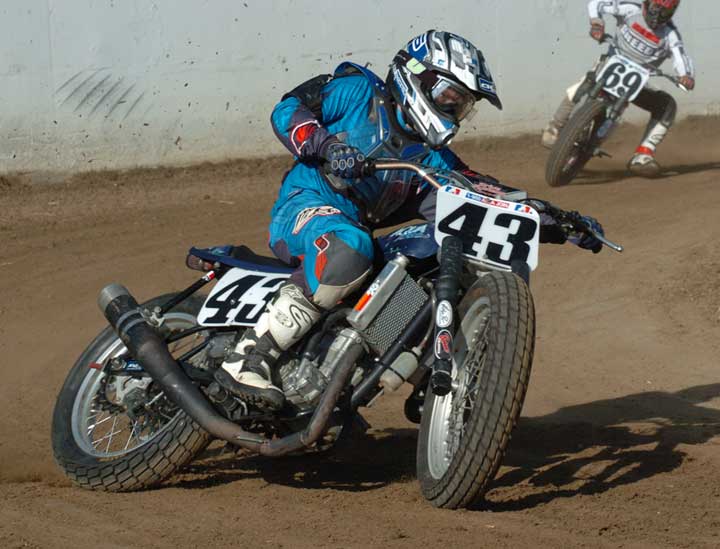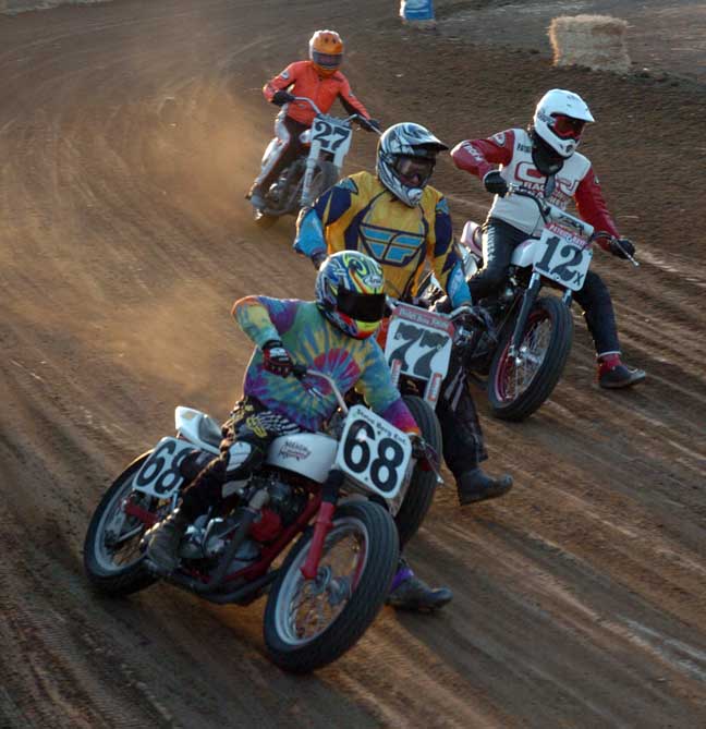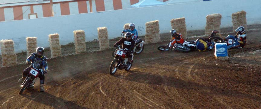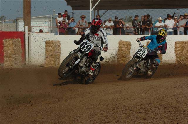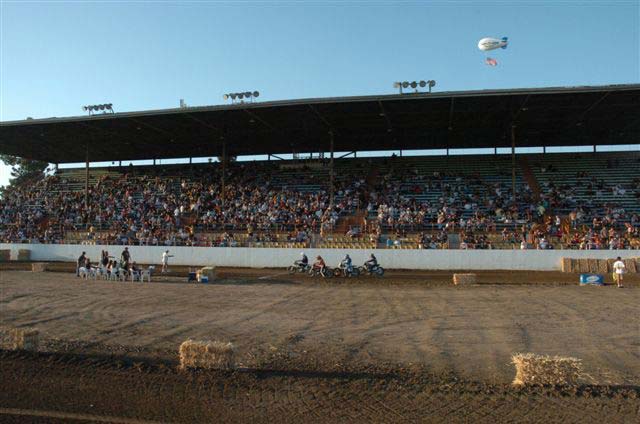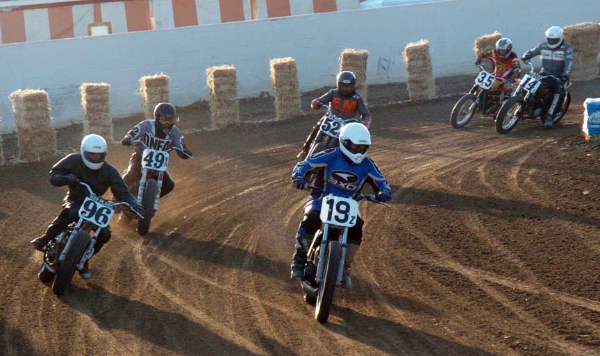 | The 4th Annual Digger Helm Short Track in Bakersfield, Ca was a real barnburner! The Kern County Fair grandstands were packed with over 3,500 screaming enthusiasts. They were there when the 28 heats started and almost all stayed glued to their seats until the final 20 lap pro main was completed. With $12,000 up for grabs there were 36 Pros who signed up to try for a piece of that action. Including many current National numbers as you can see from the results. The program went off like clockwork and the biggest cheers came when the 50 and 60cc youths rode out onto the track. There was a lot of close, exciting racing with lead changes and thrills that gave the fans a real glimpse as to how great flat track racing is. We even had the worlds fastest Lawnmower competing in the Guinn Construction Lawnmower class run every year at our event at the fair. Gary Guinn went 85 mph on the salt flats of Bonneville last week on his competition "tractor" as they call them in Diggers hometown, lol. Mike O'Neil's IROC Indian Arrow class is always spectacular and we watched some of the best brakeless riders compete on identical 49 Indian Arrows. Boy, that doesn't look easy! The Vintage bikes are great to have in the pits because they are like fine art. They tell the story of flat track that is so important to keep alive and pass on to the next generation of racers and motorcycle fans. What's even better is to hear them out on the track! Here are the results from the night. Thanks to Digger, Vizzo Racing, Zanotti Racing, A&A Racing, Gene & Gail Cummings,& McKee Electric, Coors Light, Wayne E Long C.P.A., Healthland Insurance Services and Fred Cummings Motorsports,the local sponsors who made this event a huge success. See you at Willow Springs next weekend for the 2008 Series finale doubleheader. Thanks!!! |