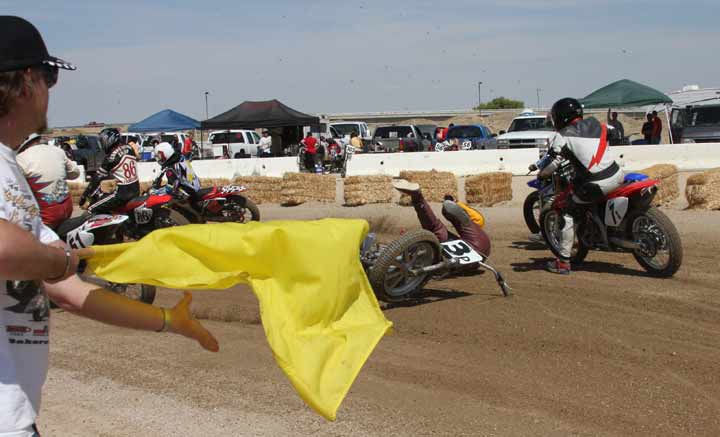 for twenty laps. On the first attempted start Briar Bauman laid it down