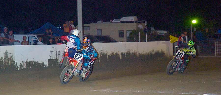 Three laps into the main event saw riders fighting for position, here