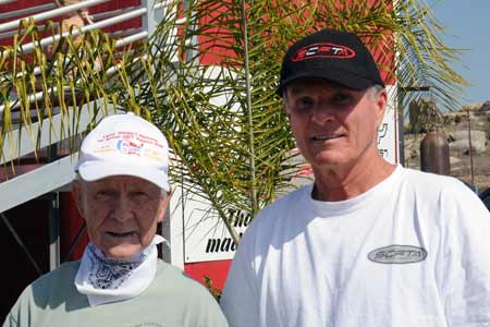 a visit to Perris. Shown here with Vince Graves the current owner of Perris. Mann stated "I always loved the dirt here at Perris, and looked forward to racing here during my career."  |
