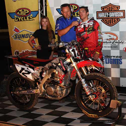 Zanotti Racing, RGR, Cool Breeze, Alpinestars 2 12 Brad Baker Specialty Fabrication Incorpation,Schenk Racing 3 2 Kenny Coolbeth, Jr. Chaplin Kawasaki,Trantolo & Trantolo,JRC 4 7 Sammy Halbert Fredericktown Yamaha,Vans Yamaha,GYTR,Flat Track 5 69 Jethro Halbert Southland Racing Suspension,Knucklehead 6 54 Mikey Rush Machete Energy,Cascio/Rush Racing,Southland Pro 7 73 Doug Lawrence R&J Racing,CVC Communicaiton Agency,American 8 60 Eric Beers Race Shop, Tacoma Motorsports, D&W Racing, Paul  |