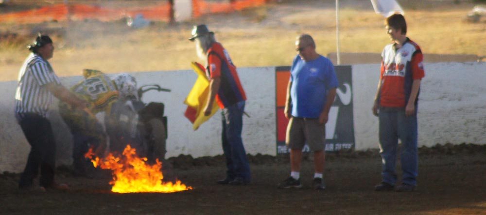 in his gas tank. A lot of gas was spilled on the track which was lighted