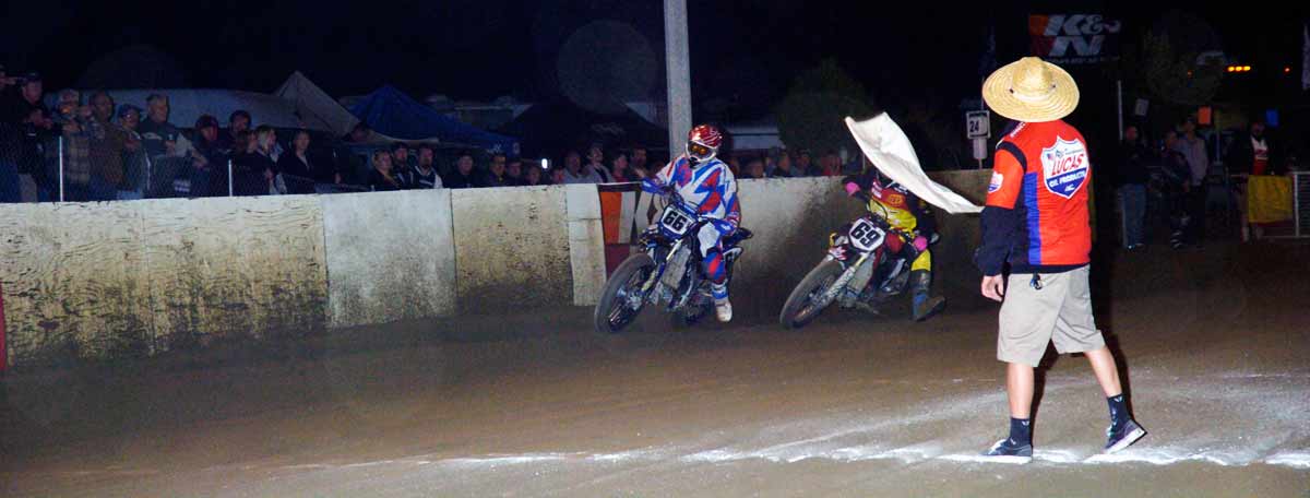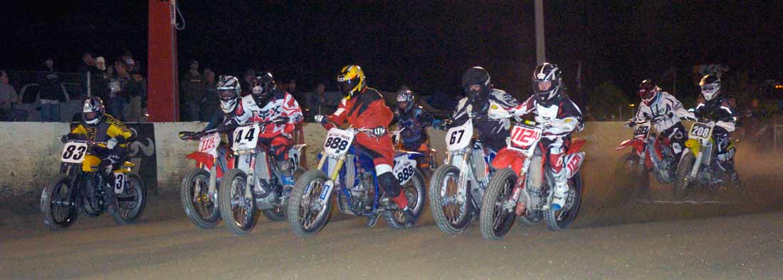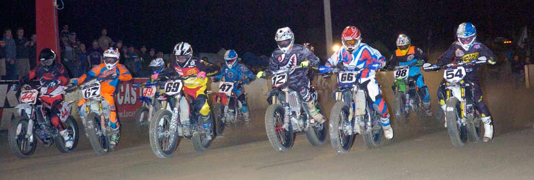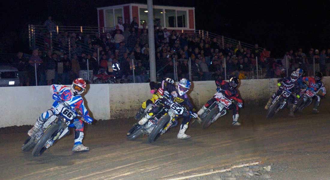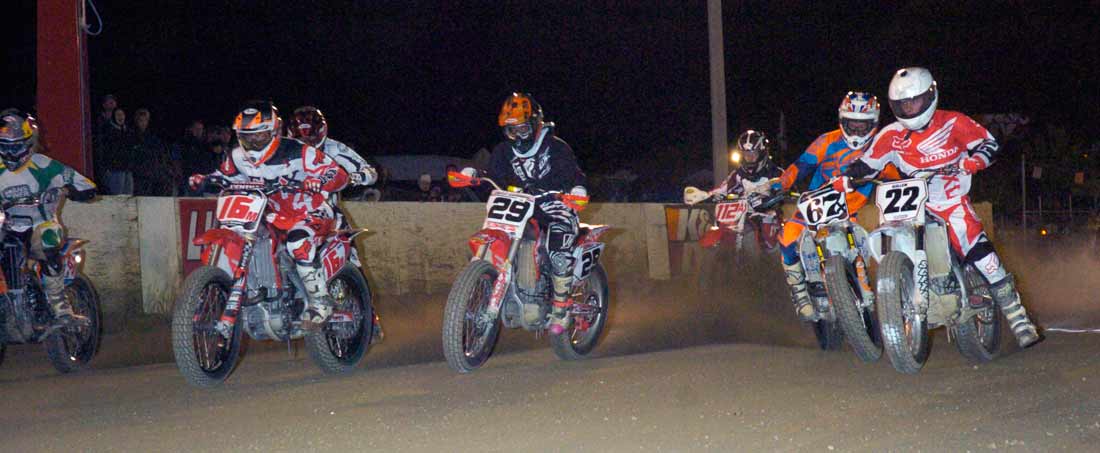 On the first run through turn one #66 Rob Pearson leads #54 Mikey Rush, #69 Jared Mees,