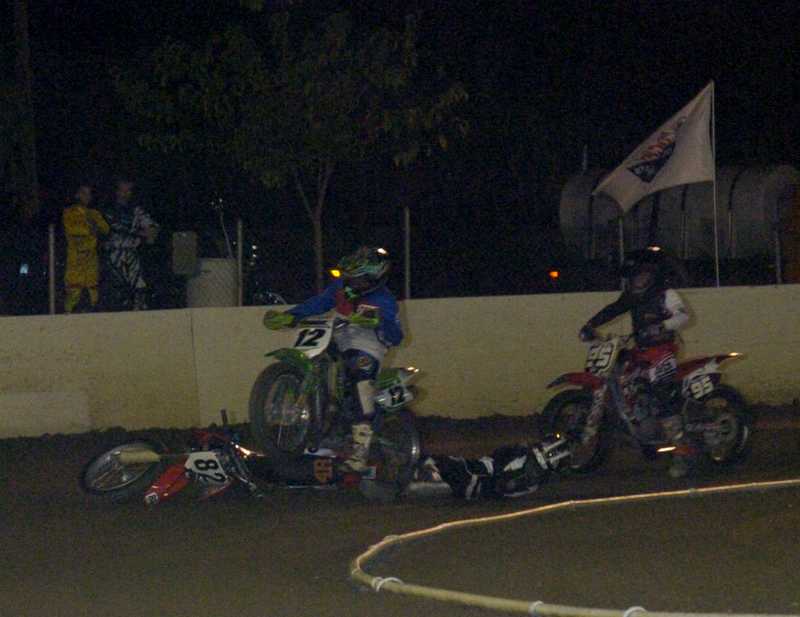 the ground, #12 James Ott who went over Petton's bike and into the wall