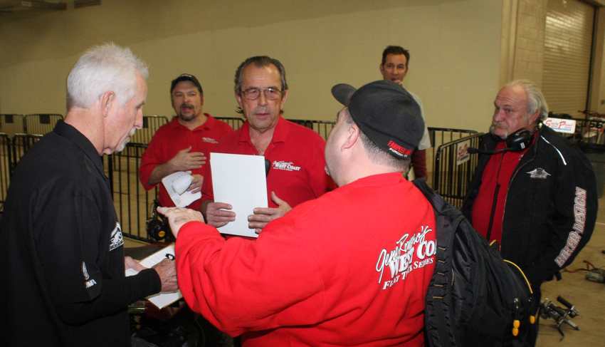 Tech for the Parker 250 was held outside the pit doors on friday afternoon.