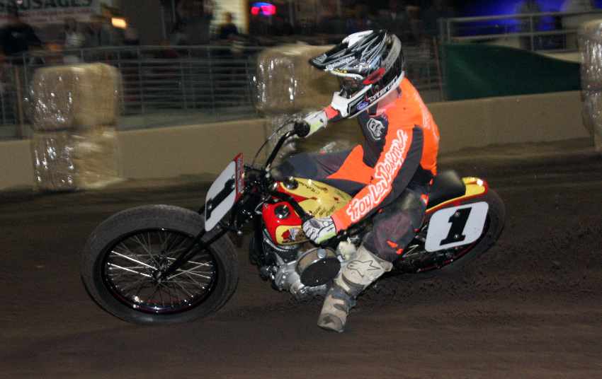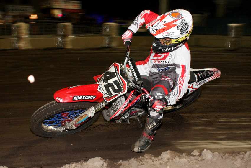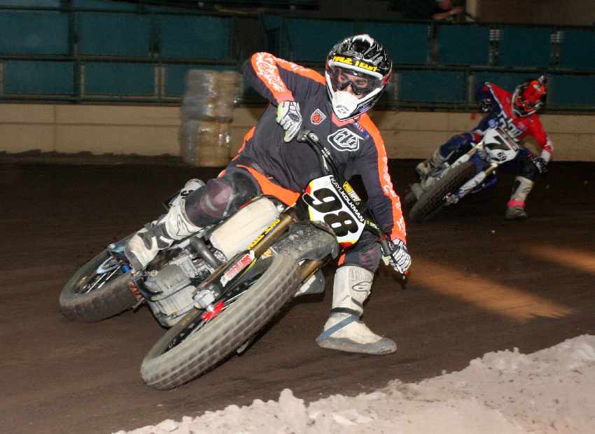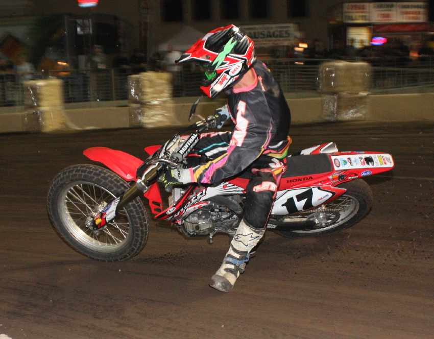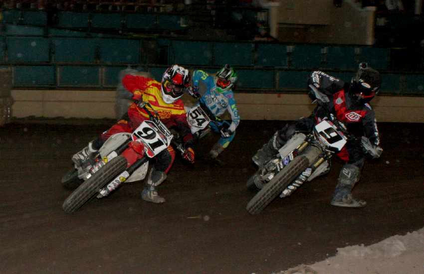 ![]() In the covered arena at Del Mar FairgroundsFebruary 14th - PROSKayl Kolkman 98, lead the first few laps until he got sideways and Sammy tagged him and they both went down.Mike Rush 54, lead the restart until he was black flagged for his pipe hanging off the bike.Sammy and Davis Fisher 67m, had a great race, passing each other until Fisher pulled away in the closing laps.Look close, Sammy is on the outside!Nancy and Jim McMurren |