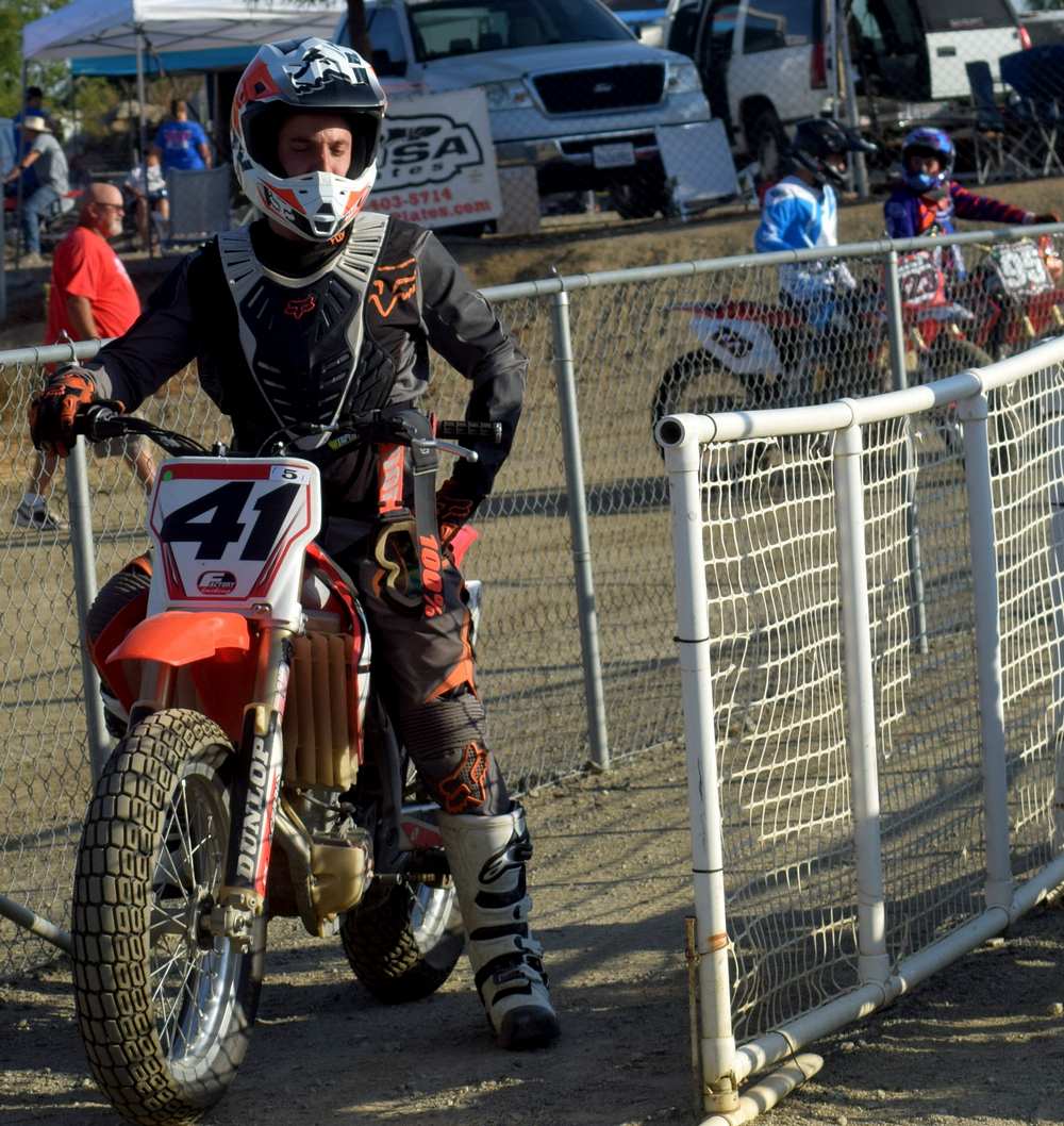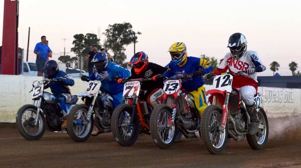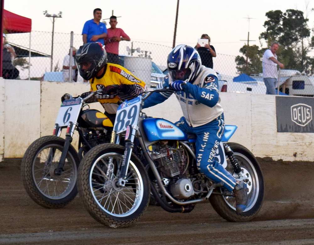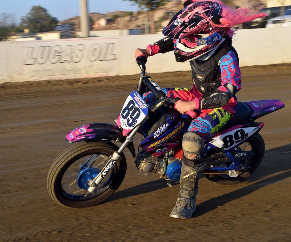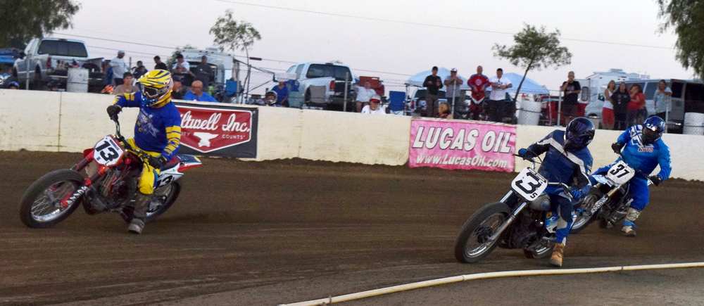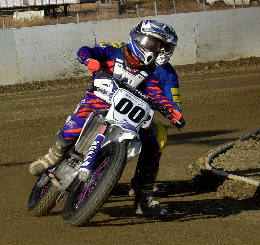 August 5, 2016, Perris California, Perris Raceway,Southern California Flat Track Association'sChampionship Series, Round 8Photos and text by Rodney RutherfordSouthern California Flat Track Association's "douze séries de Championnat", is now on towards round nine after a summery Southern California Saturday round eight, and with four rounds remaining on the roster, still plenty of racing left. Round nine will be held on September tenth as we enter into the Fall portion of Southern California's premiere sliding series. Before we get on with racing coverage, we will cover some of the people that make SCFTA tick, as well as the racers of tomorrow, and that wonderful 96 decibel sound level that will be required for 2017. Elliott Iverson (left) and Rudy Gil (right), exemplify the focus, professionalism, fairness, and solidarity of the finely tuned SCFTA track officials, because there is no "I" in team. The two are seen here collaborating and ensuring the races are ran as safely, fair, smooth, and punctual as possible. Emde Performance racer Danny Perkins, was sidelined the majority of this season with an elbow injury, but was ready to race at round seven. Unfortunately his bike was not, after failing the current SCFTA maximum of 100 decibels and he was unable to keep the bike running after making some adjustments. Returning for round eight after installing a 38 millimeter carburetor on his Cycle Logic 1978 Yamaha TT500, Perkins was fast as ever which we will delve into later in the article and tested at 95.7 decibels. As a reminder, SCFTA is currently allowing a grace period for sound testing, all bikes must be 100 decibels with the optimum being 96 decibels or lower, but for 2017 there will be a limit of 96 decibels that everyone must meet in order to keep the track open and neighbors happy. Alarmco racer Travis "Corner Speed" Horn, continues to proceed up the racing food chain with his winning ways, aided by his support structure and relentlessly dedicated parents Jeremy and Gina. With their unlimited love and encouragement, the third grader conquers multiple disciplines on a routine basis including Speedway, Flat Track, Supermoto, and Road Racing. The Team Motorsports Junkie slider is decorated in several racing series, winning the 2015 Gumball Pee Wee (PW) Modified (Mod), then returning in 2016 for a double dip repeating for his second consecutive Gumball PW Mod Championship, and hoisting the number one plate in the Gumball 2016 PW Stock title as well. He also holds class titles in the IV League Flat Track series, and has four SCFTA number one plates from 2014 to 2015. In the 2016 Speedway series he has over five and Division 2 main wins in the Mini 150 class. Horn recently finished third in the 2016 FIM/AMA Silver Cup Mini 150 Division 2 and has since moved up to Division 1, reportedly finishing the season with multiple Division 1 top three finishes . With the SCFTA he currently stands first in the SCFTA 65cc Open, with an undefeated mark in all seven rounds he has raced. Horn would like to thank K & N Filters, Pit Strap, De Mario Racing, Pistonbones, Gina Horn Designs and all his supporters. The Mitchell Family, are one of several Families that support and a pillar of the racing experience that is the SCFTA. Jake Mitchell found himself getting into racing with encouragement from his sister, Isabella "Izzy" Mitchell. Racing for three years and winning a 2014 SCFTA title, he is hungry for more. Related to long time Flat Track racer, Danny Perkins, he has an encyclopedia of knowledge at this door step when needed. Looking forward to moving up to the 250 Youth Open, he is currently racing in the Youth 85cc Open, and leads the points in the 85cc 2-Stroke Beginner on his Kawasaki KX85. He would like to thank his Aunt Kathie, Aunt Carrie, Christian, Garrett, Danny Perkins, Mom and Dad, Leatt, C2O Coconut Water, Ryno Power, O'Neal, Dragon Alliance and everyone that supports him.. Frank Flores, part of SCFTA's illustrious Flores Family, with mom Patty and Dad Jess manning the helm of the Family team, consisting of Frank and Sister Alyssa. Frank will be moving on soon to the 250 Youth Open, after being a foundation of the SCFTA 85cc program. He would like to thank Ron's Rear Ends, Flores Automotive and his entire Family. Let's race. Colin Petton (46), has an itty-bitty lead over Horn in their 65-70cc Open main melee. No problem for the scrapper Horn sporting the duece-cinco, as he gives the throttle cable a serious tension test ripping by Petton in the early going and the main win is his, Petton for second. Petton went on to win in the 65-70cc 2-Stroke Amateur. Horn also racing in the class against Petton, tested the waters in his first ever ride with slitted Flat Track tires on a Kawasaki KX65, completing his inaugural race on the set up in second. Sierra Hickerson (3) and Jasper Heathfield (713), getting into a sliding scrap as they do almost every time they race together. This time it was Heathfield with the best spot at the end taking third, and Hickerson fourth. Always the jester, Isabella "Izzy" Mitchell, brings home the fifth spot in the 65-70cc Open. The 85cc Open main restart and let's get it on, seen here are Jadon Schroeder (27), Jake Mitchell (3), Conner Hickerson (45), Tanner Richey (13), and Travis Petton IV (82) at the pole position. The 85cc Open main is off the line and Tanner Richey gets the fresh air with Zaden Florez in tow, but no sooner we get up to speed the red light is out and a restart in on the menu, reportedly Richey took off too early. Early on after the restart Florez at the front, Petton IV in second, Frank Flores several bike lengths back in third and Conner Hickerson fourth. Zaden Florez (55) and Tanner Richey (13), grapple out of turn two into the back-stretch of the 85 Open heat race. Petton IV slithers inside of turn one and bullies his way into the lead, Florez now second. We go past lap four and Petton jostling away for the win, Florez with a very strong ride