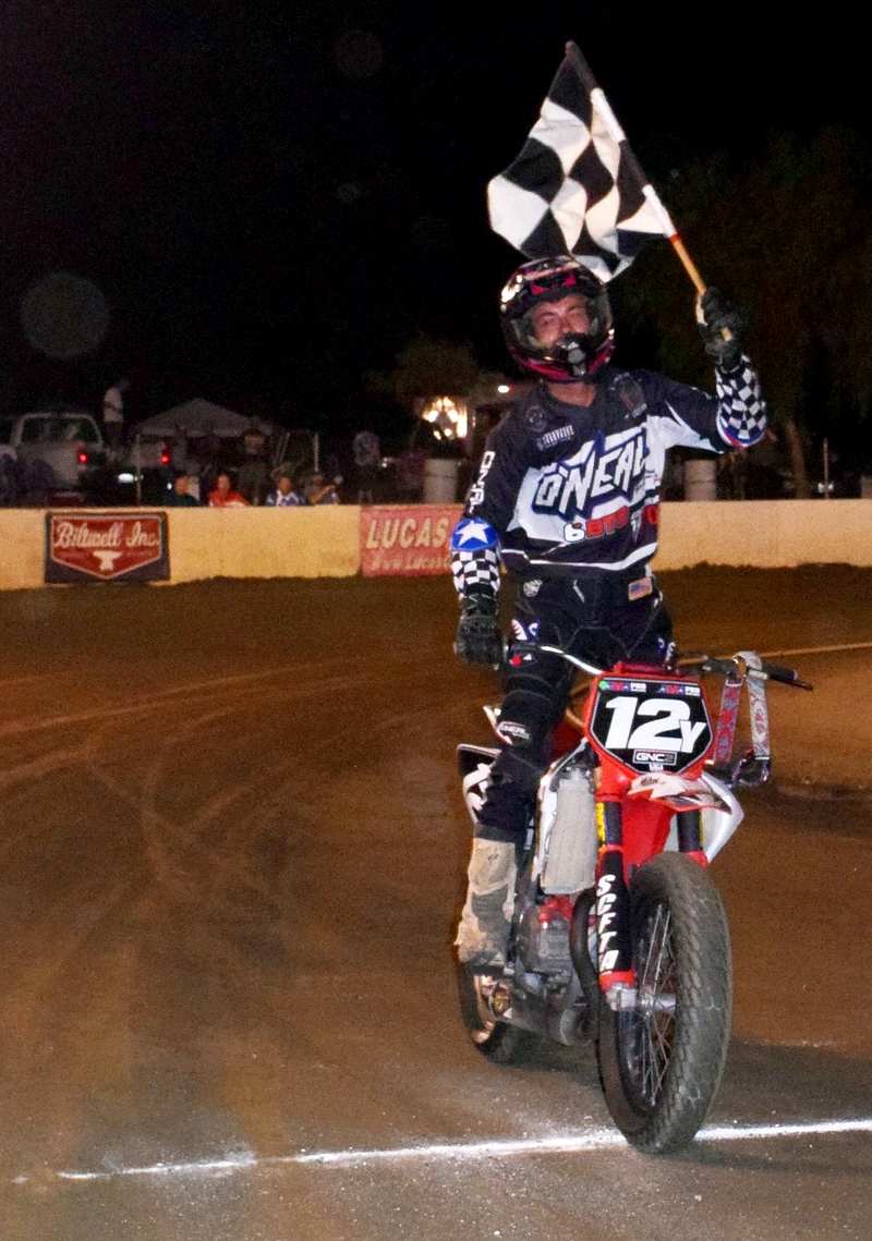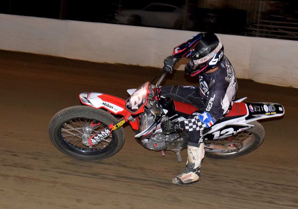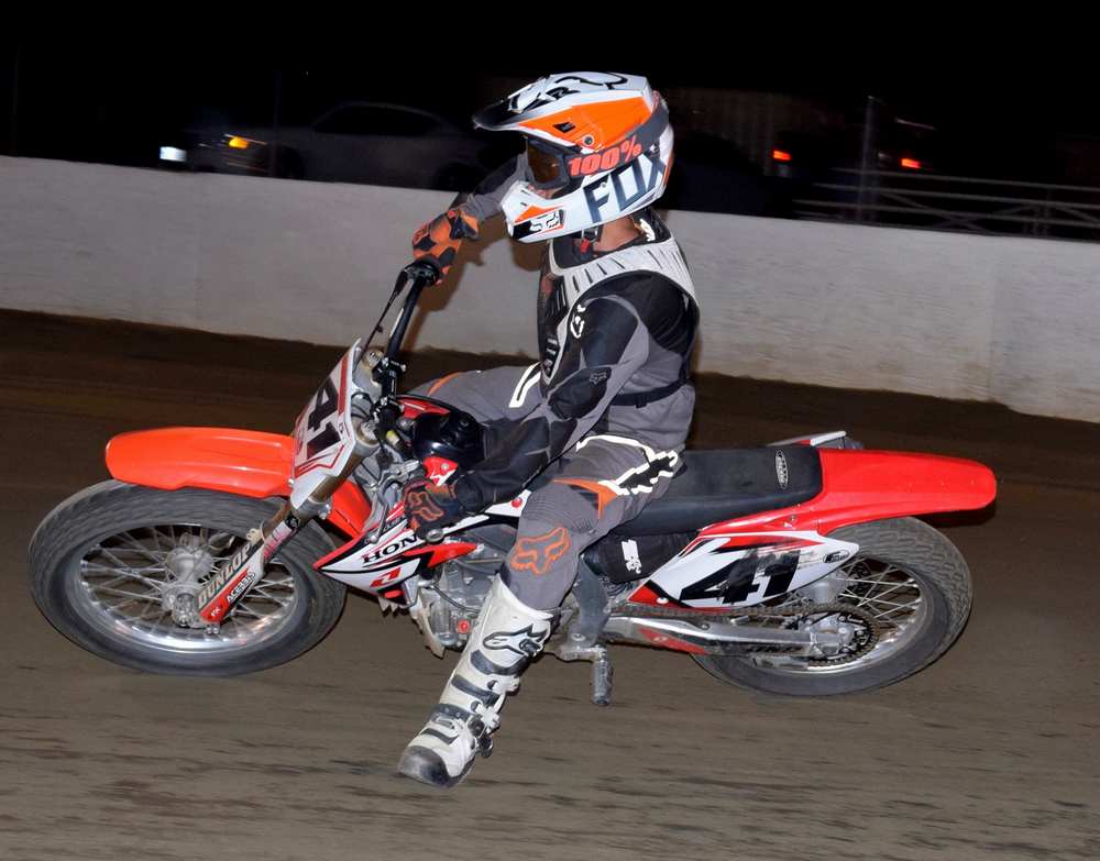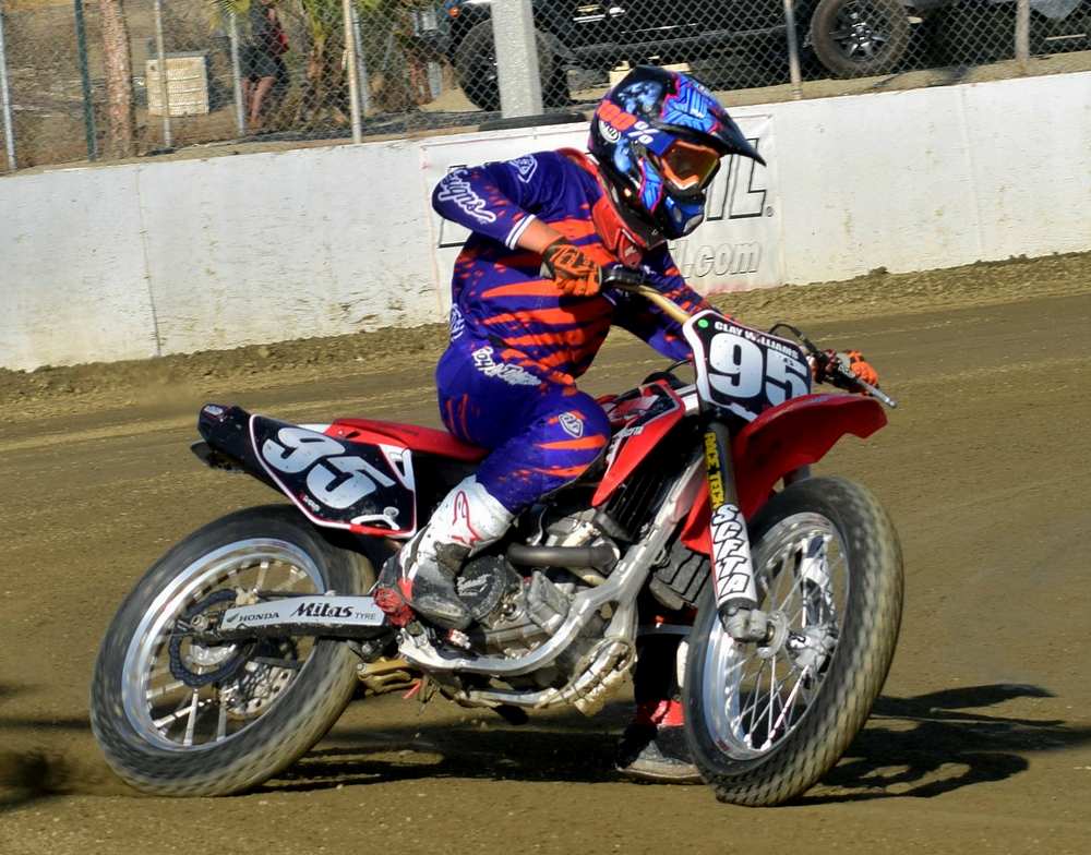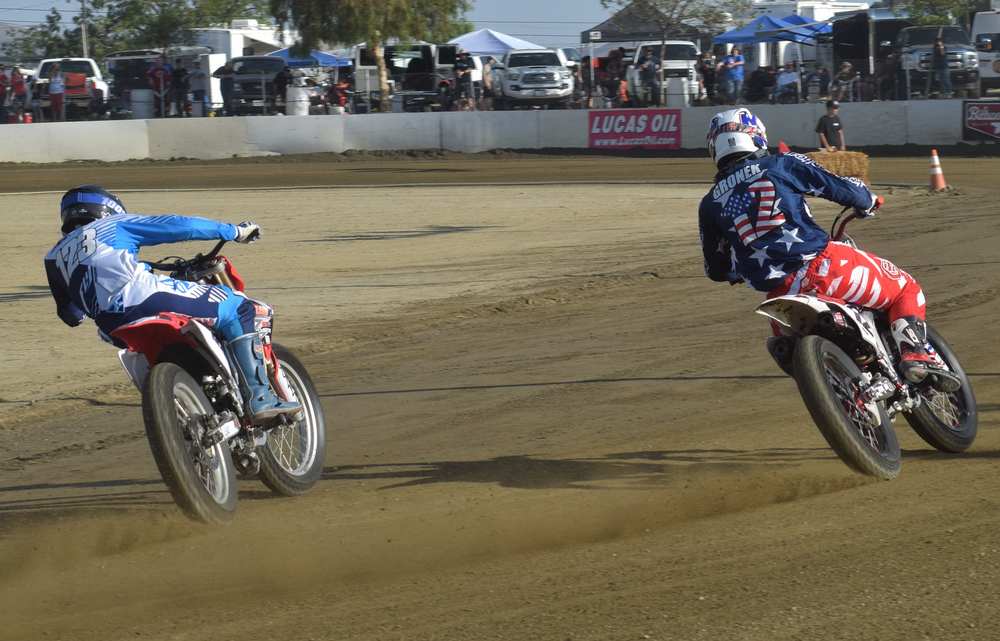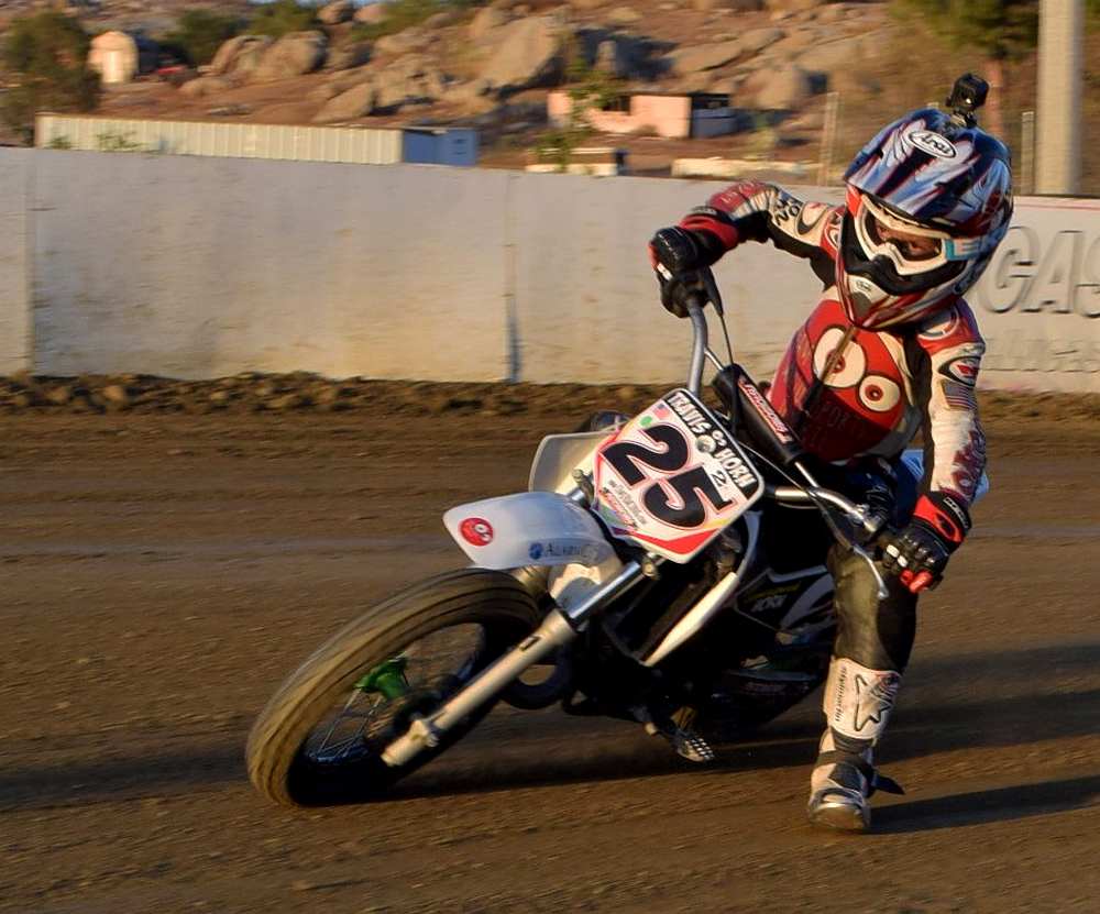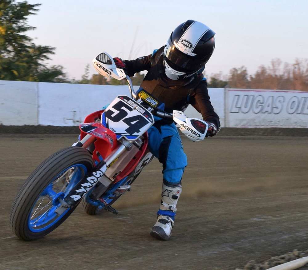 August 5, 2016, Perris California, Perris Raceway,Southern California Flat Track Association'sChampionship Series, Round 8Photos and text by Rodney RutherfordSouthern California Flat Track Association's "douze séries de Championnat", is now on towards round nine after a summery Southern California Saturday round eight, and with four rounds remaining on the roster, still plenty of racing left. Round nine will be held on September tenth as we enter into the Fall portion of Southern California's premiere sliding series. Before we get on with racing coverage, we will cover some of the people that make SCFTA tick, as well as the racers of tomorrow, and that wonderful 96 decibel sound level that will be required for 2017. Elliott Iverson (left) and Rudy Gil (right), exemplify the focus, professionalism, fairness, and solidarity of the finely tuned SCFTA track officials, because there is no "I" in team. The two are seen here collaborating and ensuring the races are ran as safely, fair, smooth, and punctual as possible. Emde Performance racer Danny Perkins, was sidelined the majority of this season with an elbow injury, but was ready to race at round seven. Unfortunately his bike was not, after failing the current SCFTA maximum of 100 decibels and he was unable to keep the bike running after making some adjustments. Returning for round eight after installing a 38 millimeter carburetor on his Cycle Logic 1978 Yamaha TT500, Perkins was fast as ever which we will delve into later in the article and tested at 95.7 decibels. As a reminder, SCFTA is currently allowing a grace period for sound testing, all bikes must be 100 decibels with the optimum being 96 decibels or lower, but for 2017 there will be a limit of 96 decibels that everyone must meet in order to keep the track open and neighbors happy. Alarmco racer Travis "Corner Speed" Horn, continues to proceed up the racing food chain with his winning ways, aided by his support structure and relentlessly dedicated parents Jeremy and Gina. With their unlimited love and encouragement, the third grader conquers multiple disciplines on a routine basis including Speedway, Flat Track, Supermoto, and Road Racing. The Team Motorsports Junkie slider is decorated in several racing series, winning the 2015 Gumball Pee Wee (PW) Modified (Mod), then returning in 2016 for a double dip repeating for his second consecutive Gumball PW Mod Championship, and hoisting the number one plate in the Gumball 2016 PW Stock title as well. He also holds class titles in the IV League Flat Track series, and has four SCFTA number one plates from 2014 to 2015. In the 2016 Speedway series he has over five and Division 2 main wins in the Mini 150 class. Horn recently finished third in the 2016 FIM/AMA Silver Cup Mini 150 Division 2 and has since moved up to Division 1, reportedly finishing the season with multiple Division 1 top three finishes . With the SCFTA he currently stands first in the SCFTA 65cc Open, with an undefeated mark in all seven rounds he has raced. Horn would like to thank K & N Filters, Pit Strap, De Mario Racing, Pistonbones, Gina Horn Designs and all his supporters. The Mitchell Family, are one of several Families that support and a pillar of the racing experience that is the SCFTA. Jake Mitchell found himself getting into racing with encouragement from his sister, Isabella "Izzy" Mitchell. Racing for three years and winning a 2014 SCFTA title, he is hungry for more. Related to long time Flat Track racer, Danny Perkins, he has an encyclopedia of knowledge at this door step when needed. Looking forward to moving up to the 250 Youth Open, he is currently racing in the Youth 85cc Open, and leads the points in the 85cc 2-Stroke Beginner on his Kawasaki KX85. He would like to thank his Aunt Kathie, Aunt Carrie, Christian, Garrett, Danny Perkins, Mom and Dad, Leatt, C2O Coconut Water, Ryno Power, O'Neal, Dragon Alliance and everyone that supports him.. Frank Flores, part of SCFTA's illustrious Flores Family, with mom Patty and Dad Jess manning the helm of the Family team, consisting of Frank and Sister Alyssa. Frank will be moving on soon to the 250 Youth Open, after being a foundation of the SCFTA 85cc program. He would like to thank Ron's Rear Ends, Flores Automotive and his entire Family. Let's race. Colin Petton (46), has an itty-bitty lead over Horn in their 65-70cc Open main melee. No problem for the scrapper Horn sporting the duece-cinco, as he gives the throttle cable a serious tension test ripping by Petton in the early going and the main win is his, Petton for second. Petton went on to win in the 65-70cc 2-Stroke Amateur. Horn also racing in the class against Petton, tested the waters in his first ever ride with slitted Flat Track tires on a Kawasaki KX65, completing his inaugural race on the set up in second. Sierra Hickerson (3) and Jasper Heathfield (713), getting into a sliding scrap as they do almost every time they race together. This time it was Heathfield with the best spot at the end taking third, and Hickerson fourth. Always the jester, Isabella "Izzy" Mitchell, brings home the fifth spot in the 65-70cc Open. The 85cc Open main restart and let's get it on, seen here are Jadon Schroeder (27), Jake Mitchell (3), Conner Hickerson (45), Tanner Richey (13), and Travis Petton IV (82) at the pole position. The 85cc Open main is off the line and Tanner Richey gets the fresh air with Zaden Florez in tow, but no sooner we get up to speed the red light is out and a restart in on the menu, reportedly Richey took off too early. Early on after the restart Florez at the front, Petton IV in second, Frank Flores several bike lengths back in third and Conner Hickerson fourth. Zaden Florez (55) and Tanner Richey (13), grapple out of turn two into the back-stretch of the 85 Open heat race. Petton IV slithers inside of turn one and bullies his way into the lead, Florez now second. We go past lap four and Petton jostling away for the win, Florez with a very strong ride