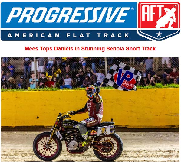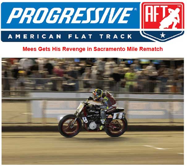 Sacramento, California. Those bragging rights were brought into question after Mees was outscored 2-1 in Mission SuperTwins presented by S&S Cycle Mile wins a year ago by then-rookie Dallas Daniels (No. 32 Estenson Racing Yamaha MT-07 DT). Their first Mile showdown of the season carried even greater significance than it otherwise would have with Daniels having arguably emerged the title favorite and leading reigning champion Mees in the points. The race went to script with the two separating at the front and settling into a one-on-one fight to the flag. Just past mid-distance, Mees railed around the corners with his helmet down in an attempt to break Daniels’ challenge. While unable to sink Daniels’ hopes completely, the ploy granted Mees a few tenths which he successfully guarded all the way to the end. The victory was the 24th Mile triumph of Mees’ illustrious career. That moves him ahead of Ricky Graham and into sole possession of fifth place on the all-time order and just one away from joining Bubba Shobert and Bryan Smith in a tie for third. The result also drew Mees a bit closer to the championship lead. That said, Daniels is not doing him any favors in that regard, extending his season-long streak of top-two finishes. The gap is now 20 points (159-139) as the two continue to distance themselves from the remainder of a talented pack of contenders. “I honestly was sweating coming into the Miles – last year I felt like we were a little down,” Mees admitted after earning his fifth-career Sacramento Mile win. “I didn’t know what to expect. But Kenny (Tolbert) worked really hard this winter to get us back some ponies, and Jimmy Wood really had that thing hooked up with the Öhlins suspension. I don’t think I’ve ever been that hooked up before. I could just go into the corner and mash the throttle. The Indian Motorcycle was phenomenal tonight.” Daniels’ teammate, JD Beach (No. 95 Estenson Racing Yamaha MT-07 DT), solidified his hold on third in the championship order with his third podium of the season. It only came about following a final-lap duel with Kolby Carlile (No. 36 G&G Racing/Yamaha Racing Yamaha MT-07), however, when Beach poked ahead by 0.021 seconds at the line. Brandon Robinson (No. 44 Mission Roof Systems Indian FTR750) and Davis Fisher (No. 67 Rackley Racing/Bob Lanphere’s BMC Racing Indian FTR750) each had a shot at the box on the final lap as well, ultimately finishing fractionally behind in fifth and sixth, respectively. Briar Bauman (No. 3 Parts Plus/Jacob Companies KTM 790 Duke) earned a lonely seventh, although that description fails to adequately express the contour of his race. Bauman actually led more than once early in the contest before running wide on the powerful-yet-brutish KTM and dropping to fifth. He worked his way back up to third at one point before going off the groove again and fading out of podium contention. Bauman was followed home by his brother, Bronson Bauman (No. 37 Fastrack Racing/2 Wheelz KTM 790 Duke), while Ben Lowe (No. 25 Rackley Racing/Mission Foods Indian FTR750) and Jarod Vanderkooi (No. 20 JMC Motorsports/Fairway Ford Indian FTR750) completed the top ten. Parts Unlimited AFT Singles presented by KICKER Australian phenom Tom Drane (No. 59 Estenson Racing Yamaha YZ450F) scored his maiden Parts Unlimited AFT Singles presented by KICKER victory in breathtaking fashion in Sacramento. A huge early train of 450s connected to the front slowly whittled away as the race progressed. The battle for the win at last took its final shape with just over a minute remaining when three-time Sacramento Mile winner Trevor Brunner (No. 21 Estenson Racing Yamaha YZ450F) fell away from the lead group and into the clutches of a second group bursting with big names and title contenders. With Brunner out of the fight, the checkered flag was set to be decided between Drane, Trent Lowe (No. 48 American Honda/Mission Foods CRF450R), Chase Saathoff (No. 88 American Honda/Mission Foods CRF450R), and Chad Cose (No. 49 1st Impressions Race Team/Husqvarna Racing FC450). Lowe stormed past Drane as they opened the final lap, but the diminutive Aussie stormed back by on the back straight, confident he could out-run any and all slingshot attempts in the decisive drag race to the line. He was proven correct, albeit only by just 0.005 seconds over Lowe and 0.036 seconds over Saathoff. Meanwhile, Cose finished just another 0.065 seconds back yet found himself left off the podium altogether. Drane came into the season with serious hype and had endured something of a quiet start to the year when judged based on those lofty expectations. However, tonight’s victory put everything back in its proper perspective. Ultimately, the Estenson Racing Yamaha prodigy earned his first win just a month after turning 17 and competing in what was just his eighth Progressive AFT Main Event. Perhaps even more remarkably, it was the first Main Event at a Mile in Drane’s career. He said, “I just can’t thank the team enough for all the work they do, all the hours. It’s amazing. This has boosted my confidence heaps, showing I can do it. I’m so happy.” Fifth went to Dalton Gauthier (No. 79 D&D Racing/Certified KTM 450 SX-F), who clawed his way up from outside the top ten after earning his slot on the grid via the LCQ. He placed Brunner between himself and his primary title rivals in the process. Max Whale (No. 18 Red Bull KTM Factory Racing 450 SX-F) crossed the stripe in seventh, followed by Sacramento Mile legend Shayna Texter-Bauman (No. 52 Parts Plus/Jacob Companies KTM 450 SX-F) and the impressive Travis Petton IV (No. 82 ECG Racing/3 Bros KTM 450 SX-F). The final position in the top ten went to defending class champ Kody Kopp (No. 1 Red Bull KTM Factory Racing 450 SX-F). Despite the uncharacteristic result, Kopp continues to lead in the standings with 137 points. Gauthier closed to within 14 points at 123, while Whale and Saathoff are now tied for third a
