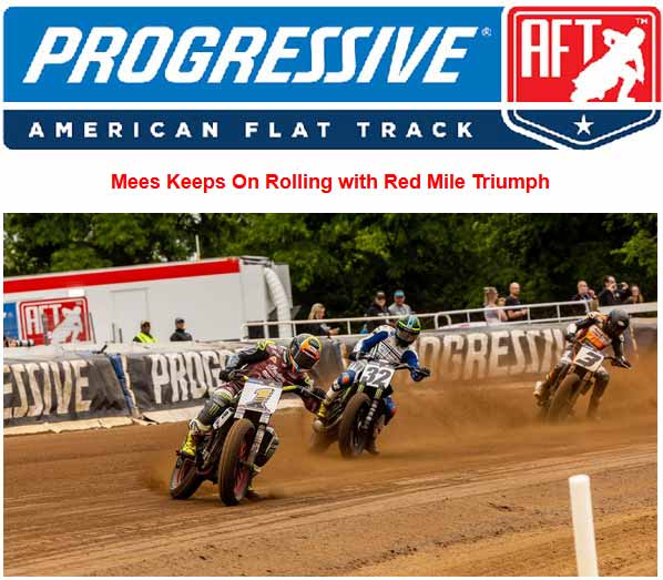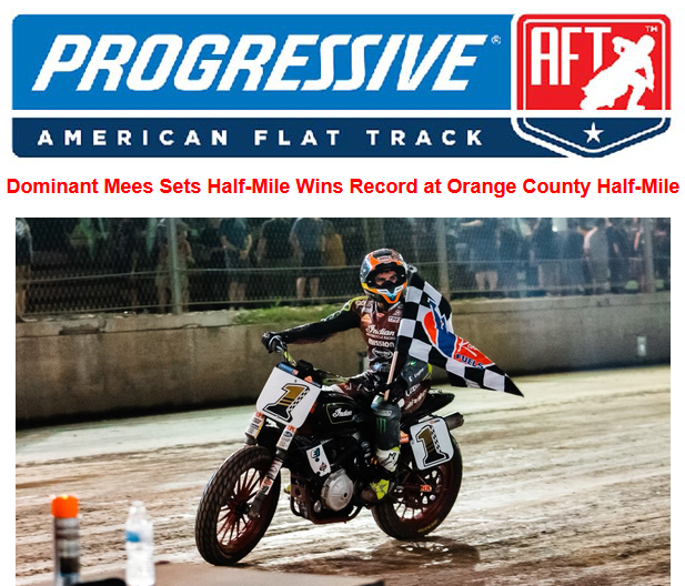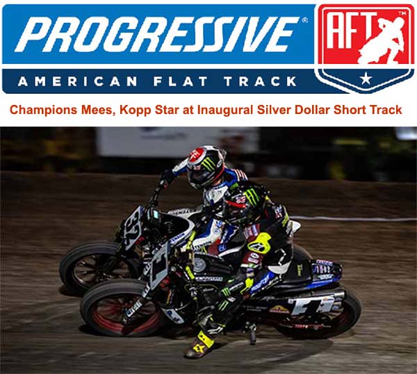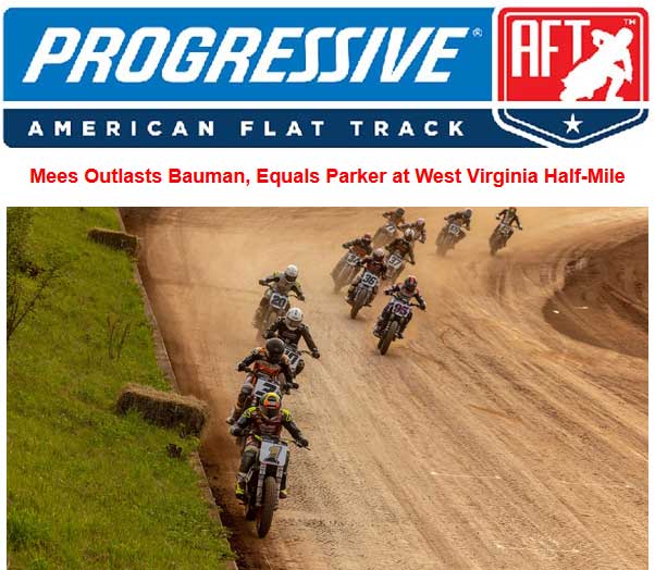 Racing, to Mineral Wells, West Virginia, after nearly two decades away. Mees came to West Virginia Motor Speedway for the first time since 2006 with an opportunity to match fellow legend Scott Parker’s mark for most Half-Mile wins in the long history of the Grand National Championship. But to do so, he understood that he was going to have to overcome the combined challenge of Mission SuperTwins presented by S&S Cycle title leader Dallas Daniels (No. 32 Estenson Racing Yamaha MT-07 DT), Lima Half-Mile conqueror Briar Bauman (No. 3 Parts Plus/Jacob Companies KTM 790 Duke), and Mission #2Fast2Tasty Challenge winner Davis Fisher (No. 67 Rackley Racing/Bob Lanphere’s BMC Racing Indian FTR750) after the four went bar-to-bar minutes earlier in the four-lap dash for cash. The potential adversaries whittled down almost immediately, however, as Fisher wheelied away his prime starting slot from pole and dropped to sixth. Meanwhile, Daniels was only one position further up the order and slotted in behind fellow Yamaha runners JD Beach (No. 95 Estenson Racing Yamaha MT-07 DT) and Dan Bromley (No. 62 HRP Racing/Memphis Shades/Mike Vinson/Corbin Yamaha MT-07). That left just Bauman alone to prevent Mees from escaping at the front. The Rick Ware Racing hero did well to demonstrate his recent success was down to more than simply capitalizing on a series of racetracks well suited to his bike’s strengths, tracking the factory Indian ace down to show him a wheel at half-distance. However, Mees’ relentless excellence ultimately won the day, allowing him to stretch open some breathing space late. In the end, he secured his record-tying 35th-career HM win with a 0.609-second margin of victory. Afterward, Mees said, “It feels really good – this is like my favorite one so far this year. I didn’t feel like we were the fastest guy lining up for that Main Event. We made some game-changing decisions after the dash with the Öhlins rear shock. With not trying something like that all day, you don’t know exactly what to expect, but I have a lot of faith in my team. It was a super finesse-y track – it was really easy to make a mistake and lose your momentum. I thought Briar and Davis were the guys to beat. But I hit my marks every lap, moved around to figure out where Briar was catching me, got my spot and felt the motorcycle hook up and move forward.” Behind, Daniels’ season-long podium streak came under serious threat. He was pressed hard to work his way around Beach and Bromley before being forced to fight his way back up to third after Bromley contacted his rear wheel with four minutes remaining. Both riders came close to hitting the dirt following the incident, which allowed Beach to steal third and Fisher to close in to make for a four-way sprint for the final spot on the box. Daniels ultimately rebounded to keep his perfect top-three run intact. In doing so, he also held on to his points lead, albeit by a slim five-point margin over reigning champion Mees (237-232). Beach followed his teammate home fourth. Fisher picked up fifth, while part-timer Bromley only had a sixth-place finish to show for his impressive outing. Jarod Vanderkooi (No. 20 JMC Motorsports/Fairway Ford Indian FTR750) charged the entire distance in an attempt to make it a five-way scrap for the podium before earning a relatively close seventh. Likewise, Johnny Lewis (No. 10 Moto Anatomy X Powered by Royal Enfield 650) slashed up to eighth, despite starting from the back of the pack after suffering a mechanical issue during his heat race. Henry Wiles (No. 17 BriggsAuto.com/Martin Trucking Indian FTR750) and Jeffery Lowery (No. 223 Lowery Racing/Gray Hogs Yamaha MT-07) rounded out the top ten. Parts Unlimited AFT Singles presented by KICKER Defending Parts Unlimited AFT Singles presented by KICKER champ Kody Kopp (No. 1 Red Bull KTM Factory Racing 450 SX-F) once again showcased his Half-Mile mastery by scoring the seventh victory of his young career at the distance on Saturday night. And like last week’s win, this one came with considerable effort. From the start, Kopp was embroiled in an evolving melee with Trevor Brunner (No. 21 Estenson Racing Yamaha YZ450F) and James Ott (No. 19 1st Impressions Race Team/Husqvarna Racing FC450). With multiple lines working, the three moved up and down the track as they exploited their preferred angles of attack while looking for any possible edge over one another. Brunner pushed into the lead at mid-distance and held a half-second advantage at one point. However, the KTM star put his head down, reeled the Estenson Racing pilot back in, and kept up the momentum once he stormed past on the high line. With a minute remaining on the clock, Kopp held a similar gap of his own, which he then managed to the checkered flag. Kopp said, “The goal all day was to get a good start and try to split… we didn’t do that. Trevor got a great start, and he had a pace that was hard to keep up with. He had this line through 3 and 4 that had us skimming the Airfence every lap. I couldn’t figure that corner out, but I felt like we had him covered in 1 and 2. By the end of it, we kept digging and figured some things out and charged hard. This was a fun track and a fun race.” Brunner finished as the race’s runner-up to earn his first podium since the season opener. He followed by Ott, who faded slightly late en route to his third top three of the season. Trent Lowe (No. 48 American Honda/Mission Foods CRF450R), who joined the battle for the lead momentarily, took a lonely fourth. Meanwhile, his Turner Racing Honda teammate, Chase Saathoff (No. 88 American Honda/Mission Foods CRF450R), won out in a scrap for fifth over Max Whale (No. 18 Red Bull KTM Factory Racing 450 SX-F) and Tom Drane (No. 59 Estenson Racing Yamaha YZ450F). With five wins to his name in ‘23, Kopp has rebuilt a commanding lead in his title defense, now leading by 40 points (216-176) over Whale. Brunner’s big night sees him move i