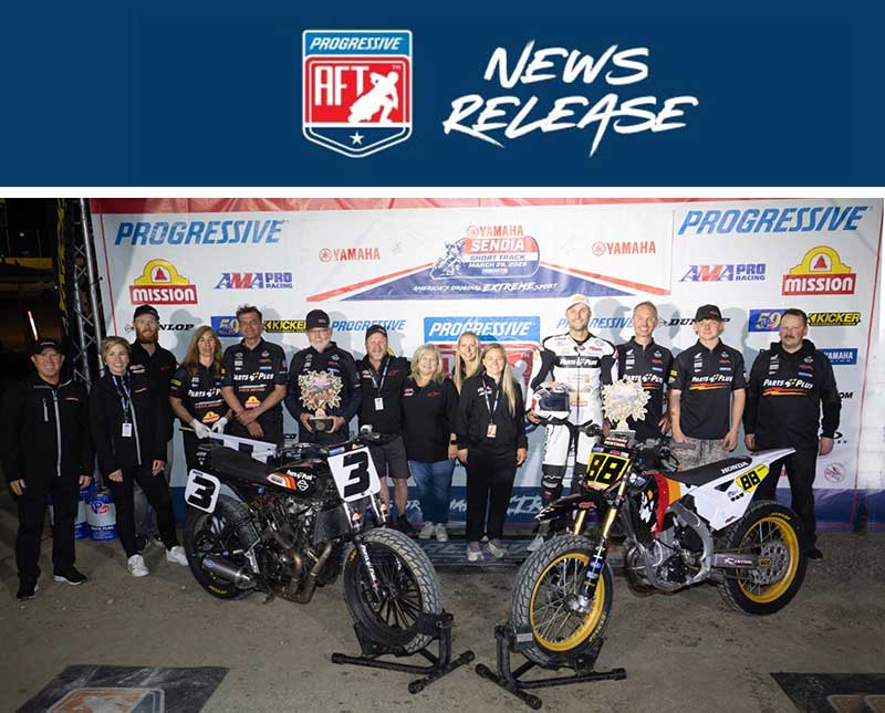 Swedesboro, New Jersey. Daniels’ triumph came by a scant 0.095 seconds over his Mission SuperTwins presented by S&S Cycle title rival, Jared Mees (No. 1 Indian Motorcycle/Rogers Racing/SDI Racing FTR750), with JD Beach (No. 95 Estenson Racing Yamaha MT-07 DT), Davis Fisher (No. 67 Rackley Racing/Bob Lanphere’s BMC Racing Indian FTR750), and Brandon Robinson (No. 44 Mission Roof Systems Indian FTR750) all in contention for a win. The victory couldn’t have been better timed for the Estenson Racing ace, as he simultaneously halted Mees’ momentum and reclaimed the title lead, if only by two points (280-278). The outcome was arguably even more important for his psyche after he’d wound up second in a series of prior head-to-head matchups with the legendary rider. Mees, who controlled the middle portion of the race after getting past early leader Beach, was unable to drop the pack the way he did last time out. That’s in part due to the fact that Beach, Daniels, and Fisher – all desperate to prevent that escape from transpiring – continued to attempt to slide underneath Mees. Those attempts would occasionally see a rider other than Mees sneak into first momentarily but never in a way that the lead change stuck. That is until Daniels worked out a high line that allowed him to roll through the corners and power down the straights. That line eventually allowed him to storm past Mees and immediately open a small advantage. But the cagey Mees adapted and closed back in for one last strike. That came in the race’s final corner, where the champ attempted a slide up on the leader’s flank, but Daniels kept it pinned and held Mees at bay by just fractions of a second at the line. The win was Daniels’ first-ever Half-Mile triumph in the premier class, moving him to within a TT win of the Grand Slam. It also saw him up his season-long podium streak to 13 in the process. “It’s been one heckuva year,” a jubilant Daniels said. “These Half-Miles are kind of the kryptonite for the Yamaha and for me on a twin. I remember on the 450, I won like six Half-Miles in a row in 2020, but when I got on a twin, it was kind of difficult. “Jared has just been kicking our butt. He won every Mile and almost all the Half-Miles. This is his forte right here. I had to reach back and grab that one. I was so nervous. That top – you’ve really got to roll it. It’s all about momentum. For a couple laps, I was just trying to get in the lead so I could do it. I knew once I cleared their front, I could roll. It just feels so good. It’s so awesome.” Beach, Fisher, and Robinson finished third through fifth, respectively, with Briar Bauman (No. 3 Parts Plus/Jacob Companies KTM 790 Duke) leading the second half of the top-ten in sixth. Jarod Vanderkooi (No. 20 JMC Motorsports/Fairway Ford Indian FTR750) came home in seventh, followed by Henry Wiles (No. 17 BriggsAuto.com/Martin Trucking Indian FTR750), Ben Lowe (No. 25 Rackley Racing/Mission Foods Indian FTR750), and Cameron Smith (No. 34 Martin Trucking/Fredericktown Yamaha MT-07). Parts Unlimited AFT Singles presented by KICKER Tom Drane (No. 59 Estenson Racing Yamaha YZ450F) continued the torrid start to his Progressive AFT career, scoring a third Parts Unlimited AFT Singles presented by KICKER victory in just 14 attempts. After dominating his heat and Al Lamb’s Dallas Honda Challenge, the young Aussie came into the Main Event as the strong favorite to end the evening atop the box. And while that ultimately proved true, he had to earn it. Drane found himself mired in fifth following a less than ideal opening lap. He then had to work to erase the gap and systematically fight his way through Jared Lowe (No. 63 Mission Foods/Helmet House Honda CRF450R), Chad Cose (No. 49 1st Impressions Race Team/Husqvarna Racing FC450), and Chase Saathoff (No. 88 American Honda/Mission Foods CRF450R) before finally shifting his sights to the race-long leader. That happened to be his teammate, Trevor Brunner (No. 21 Estenson Racing Yamaha YZ450F), who had pulled more than a second on the field in his bid to secure a first win of the season. Drane pushed Brunner’s hope back at least another weekend. He reeled in his Estenson Racing stablemate and then threw a series of slide jobs at him before finally overhauling him in a pass that saw the two make contact mid-corner. Once out front, the Drane freight train continued full steam ahead and he took the checkered flag with nearly a second in hand. Drane said, “I was just working the whole race, trying to catch up. And then right towards the end I got close enough to make the move – I didn’t mean to run into him, but that’s just racing. I can’t thank the whole team for all the work they put in throughout the day. Their work makes this all possible. I’m going to keep it going, keep the confidence up, and go into the next race just like this one.” Max Whale (No. 18 Red Bull KTM Factory Racing 450 SX-F) made it two Aussies in the top three, finishing off his charge up from seventh with a last-corner overtake of Saathoff to steal away the final spot on the podium. Trent Lowe (No. 48 American Honda/Mission Foods CRF450R) executed an impressive climb of his own, battling his way from the LCQ and an early 13th-place position to round out the top five. Lowe’s run up through the field came at the expense of reigning class champion Kody Kopp (No. 1 Red Bull KTM Factory Racing 450 SX-F), who was a tick off his usual form most of the night. The Red Bull KTM star finished sixth after winning the previous three races. But despite the minor dip in form, Kopp still boasts a commanding championship lead, which now stands at 45 points (255-210) over Saathoff. Brunner is a close third with 208 points, while the surging Drane has closed to within striking distance of second as well at 207. |