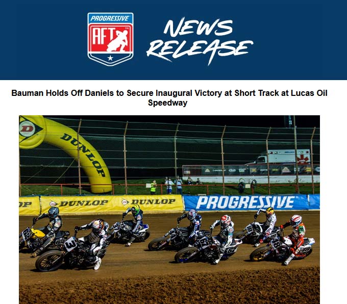 Progressive American Flat Track, sanctioned by AMA Pro Racing on Sunday