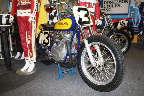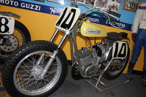 National #3 Gene Romero, rode Triumph and Yamaha powered machines.![]() ![]() Romero Factory Team Triumph - Built for the 1972 season (raced at Ascot by Dick Mann when his BSA blew up) Barnes wheels and disc brake - Ceriani RR forks with shaved sliders - S&H handlebars - Special Trackmaster frame, .049 Cromo tubing, large oil tank, engine relocated - 1973 C&J square swingarm - Axtell motor 72 HP 7250 RPM - Axtell exhaust - Axtell cams - Axtell head - Axtell ignition - Axtell intake manifolds - Axtell exhaust manifolds - Axtell crankshaft - Axtell primary cover - 270 ils - won the San Jose 1/2 mile in 1972 - The last British bike to win a mile, San Jose July 1st 1973 ![]() ![]() Romero 1975 Team Yamaha - 3 bikes built (2 dirttrackers, 1 TT) this is the only survivor - C&J frame and glass - Barnes wheels and disc brake - Ceriani RR forks - Red wing Shocks - Carrilo rods - Arias pistons - Axtell flowed head - Axtell guides, valves, cam, springs and retainers - Bendix points - Dellorto carbs - 80 hp ![]() ![]() Neil Keen's Trackmaster Yamaha Short Tracker. Keen Story by Ed Youngblood ![]() ![]()