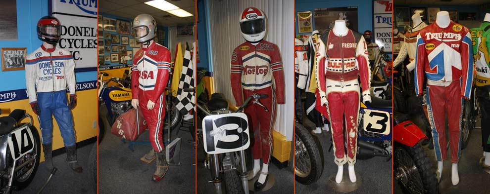 ![]() Randy Goss/ Brent Thompson HD Factory Team MX250 built in 1980 - Knight frame - Morris Magnesium front wheel - Marzocchi forks with HD race team clamps - Gremica brakes - HD rear wheel - S&W shocks - used for both the 1980 and 1983 championships top overall shorttrack points for 2 years ![]() ![]() Terry Povey won a Santa Fe Short Track National on this Bultaco 360 Astro. ![]() ![]() ![]() ![]() ![]() Nicky Hayden's Springfield winner. Gaylon Mosier's Works 1979 SR400. Norton Rotary ![]() ![]() ![]() ![]() Link to Donelsons Collection Page 1 - BSAs Donelson Cycles Web Site |