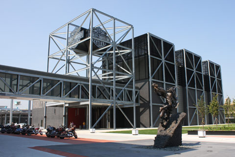 beautiful building meant to extend the Harley mystique and sell more
