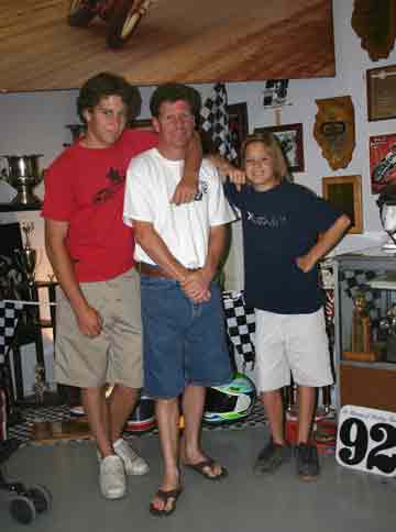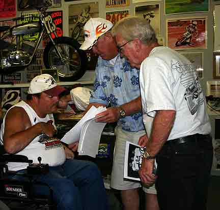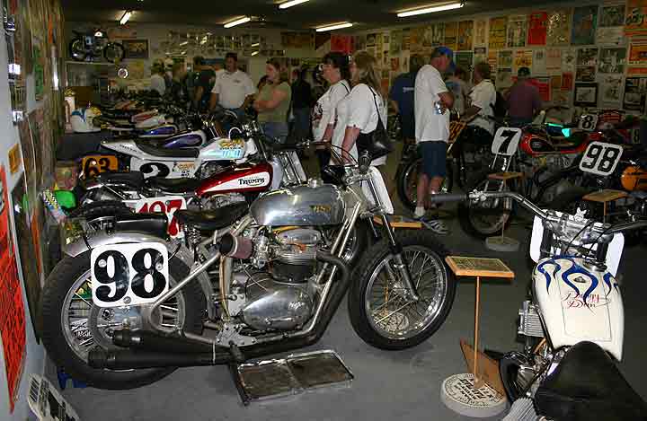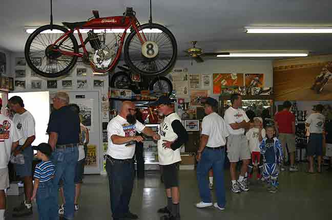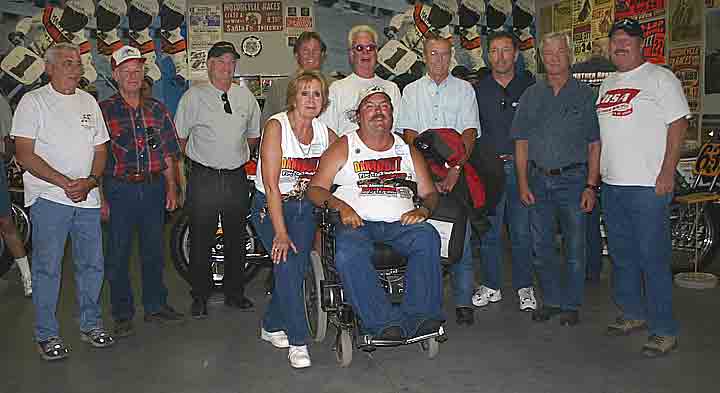 Kathy and Dan Rouit with a few flat track people that help them celebrate their 13th annual open house.