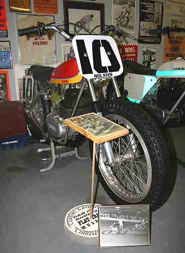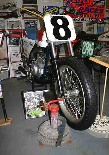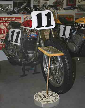 Boss frame, seat and tank, Ceriani forks, Barnes rear wheel, and 1976 Yamaha 250cc YZC engine.