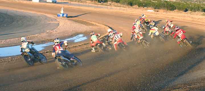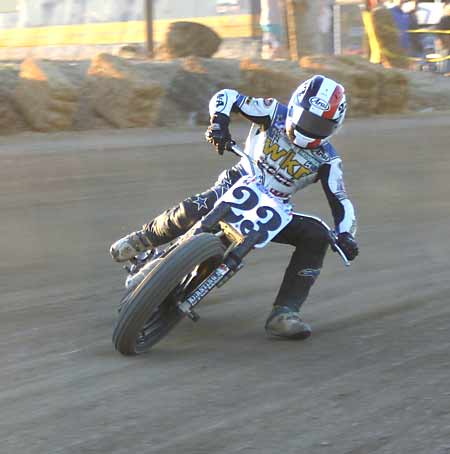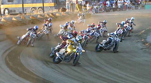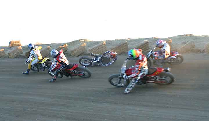 Forty-eight pros made up seven heat races, with the top two transferring directly to the Digger Helm Pro 600 Main. Three semis would berth one each giving us a field of sixteen for the twenty lap final. With the fastest heat race time by .02/100 of a second, (clocked by Chris from Motion Pro) National #21 Jared Mees reversed the line up starting from the outside on the front row. Next to Mees in order of their heat race times were Jimmy Wood, National #89 Kevin Varnes, National #59 Willie McCoy, National #18 Terry Poovey, and Steve Murray. It took only one wave of starter Fred Allen's green flag for a clean start with Suzuki's Varnes leading the way. Lancaster H.D.'s Mees ran second with WKR/Arai's Atherton third. Entering turn three on the first lap Mees ran underneath Varnes for the lead, with Atherton in tow for second. Wood on a borrowed Ron Wood Yamaha moved from sixth off the line to fourth, then across the stripe to third only to loose the front end and taste tera firma in turn one on lap two. Wood the defending champ would rejoin at the back two laps down. Lap two also would see the exit of 1st Legal/A&A Racing's Terry Poovey. Four laps in had the running order Mees, Atherton, Shaun Russell (on the move), Johnny Murphree (up from an eighth place start), Varnes, and Willie McCoy. A lap later, 1st Legal/KTM's Steve Murray would pass McCoy for sixth, while buried at mid pack were NJK/Shoei Helmets Jethro Halbert and Mike Rush. Back at the front on lap seven Mees was getting away, which is when National Cycle/CoZiahr's Murphree threw the switch and picked up his pace. A lap later Murphree displaced Russell and set his aim on Atherton. Then just before the half way point Atherton's Yamaha expired, with his hand going skyward, Murphree now in second had his work cut out for him as Mees had a twelve bike length lead. At the crossed flags (half way) the order ran Mees, Murphree, Russell, Varnes, McCoy, Rush, Halbert, Moroney's Bryon Smith, KLH's (2005 AMA Horizon Award winner) Stevie Bonsey, Murray, Alex Wood, David Brown, Nicole Cheza, and Jimmy Wood. By the twelfth go round the leaders were into lappers as both Mees and Murphree were held up at different times. Murphree now four bike lengths behind Mees could smell blood. Murphree dug deep on lap fifteen and put the Mr.Ed's Jim Wood Honda up front, but Mees wasn't about to roll over and came right back at him. This is also when Russell's day came to an end advancing Varnes to third. With one lap remaining Mees got held up slightly thus ending any run on Murphree. Halbert had climbed to fourth but couldn't get past Varnes who would take the final podium. McCoy came home fifth followed by Rush, Smith, Bonsey, Murray, Alex Wood, Brown, Cheza, and Jimmy Wood.