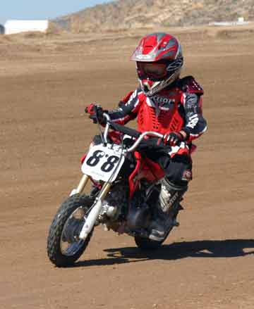 Andre Ochs and Larry Smith the third provided some of the best racing of the day in the "Tuff Plates"/"Shoei Helmets" Youth mains. Both riders aboard 65cc machines competed in the 65cc & 85cc classes. Ochs has mastered the art of starting as he usually leads the field into turn one. Och's lap time of 25.20/100 seconds would hold as the fastest lap for anyone on a 65cc machine, Ochs would come right back and top Smith again in the 85cc class giving him two victories for the day. But don't think it was easy, it wasn't, and Smith was right there and had the crowd in attendance on their feet!