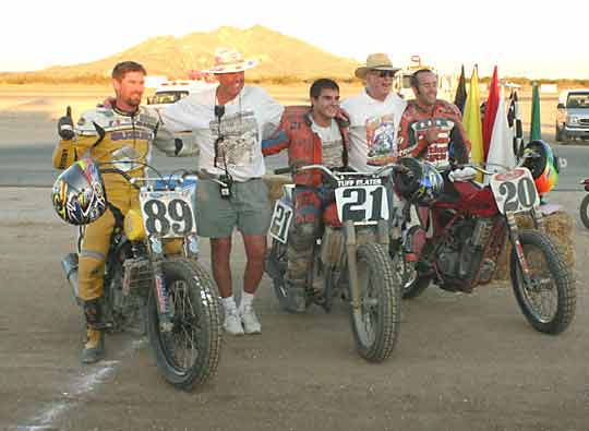 What makes an Eddie Mulder race an EVENT, as opposed to just another race are the people he brings to the table. These in the form of sponsors (more than anyone else promoting dirt track) and the crew behind the scenes. Without sponsors, A&A Racing, ARD Ignitions, Barnett, Bartels, Berkeley Yamaha/ Honda, Brown's Cycles, C&J Racing Frames, Coventry Spares, Digger Helm, Flat Track Ill., Johnson Cams, JRC Eng., K&N Filters, Kawasaki of Simi Valley, Maxima, Maxxis Tires, Megacycle Cams, Motion Pro, Red Hot Racing Frames, Rod Lake Racing, Saddlemen, San Diego Off Road, Shelly Ward Ent., Shoei Helmets, Tuff Plates, Works Performance, and Beth, Bob, Bob, David, Fred, Janice, Jessyca, Jodi, Laura, Penny, Phil, Rick, Roger, and Walt this series would never take place!