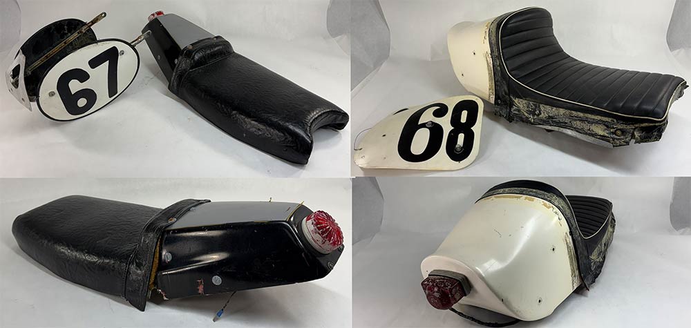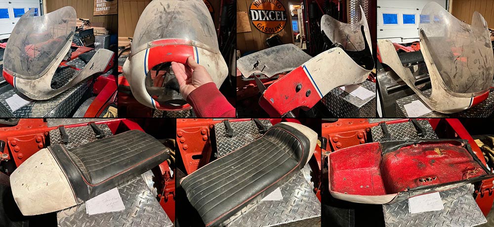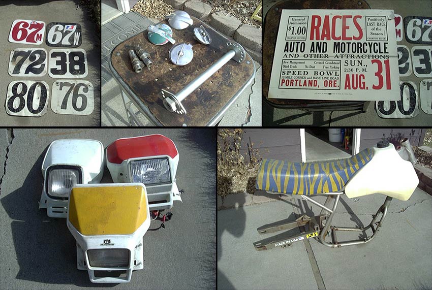 one brand new seat. 4 or 5 used seats. Foot controls, carb, radiator,