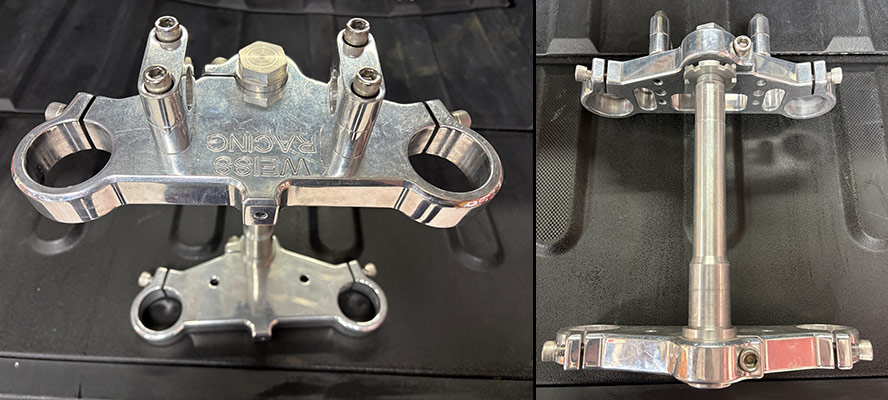 Kawasaki forks. 4 betor triple clamps. One set of brand new Mulholland