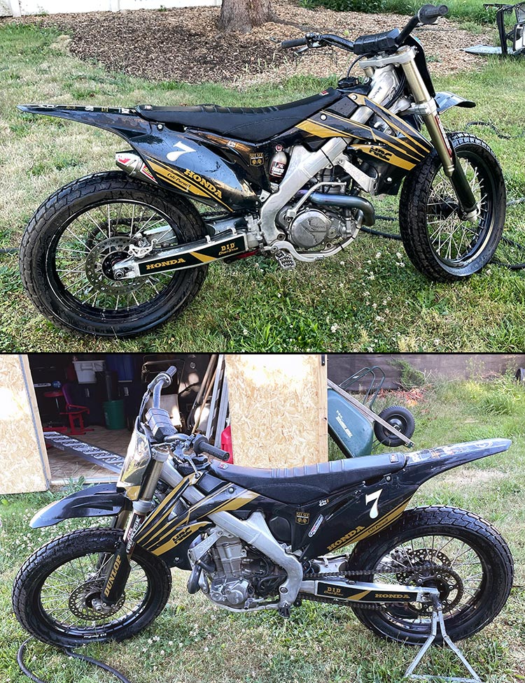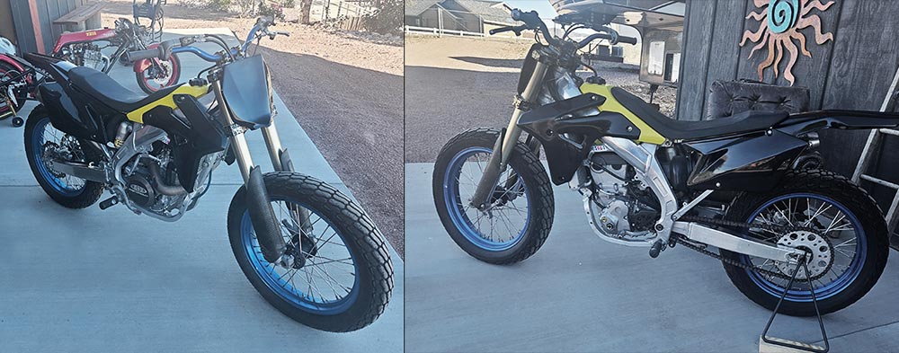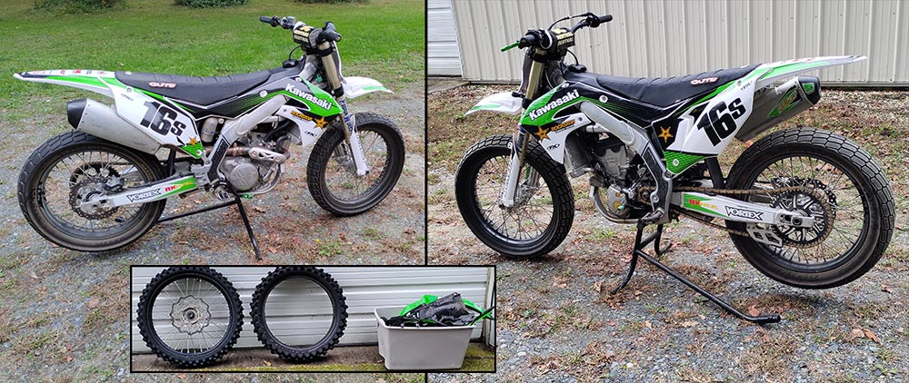 pipe, sprockets, cables, fenders, sidecovers, bars and Worx Shocks. Has