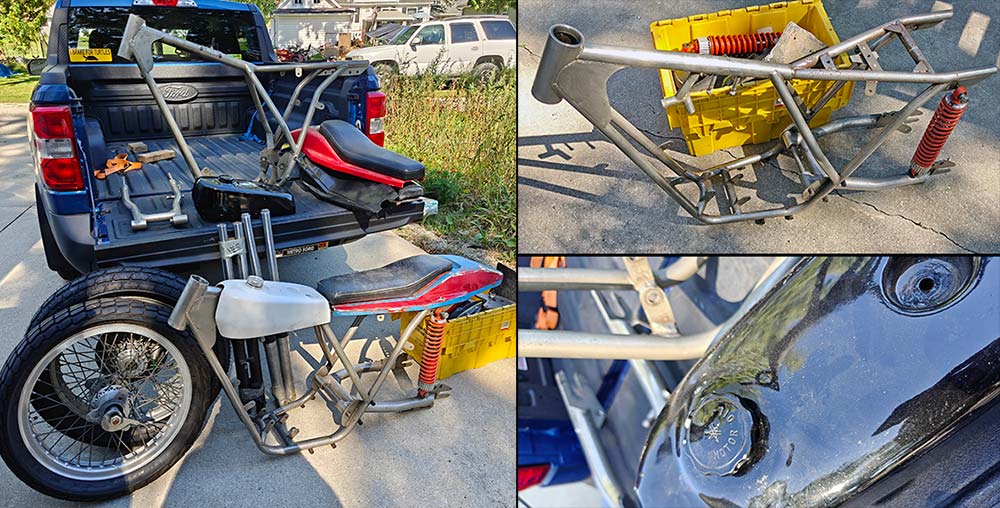 Yamaha TT500 frame, de-raked, missing foot peg mounts, modified shock mounts, clean oil tank. $50