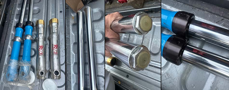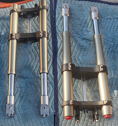 R 6 Gold Front Forks -Perfect condition - Shaved and ready for flattrack. 29.5" from top of fork to center of axle.