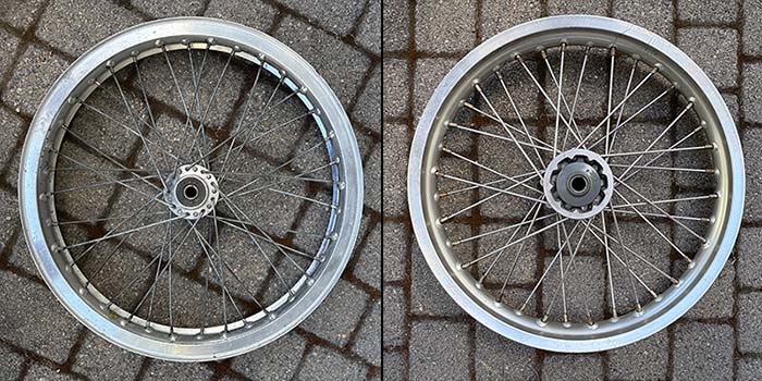 19" x 3.0" Sun rim laced to Yamaha XT500 hub with Buchanon SS