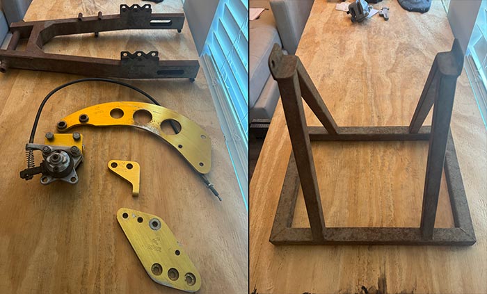 Viper NOS swingarm, Viper mechanical brake system and Viper brake lever/ footrest bracket $650.