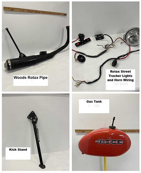 tank-vented@ $550.00, speedo@ $450.00, slash cut exhaust-nos@