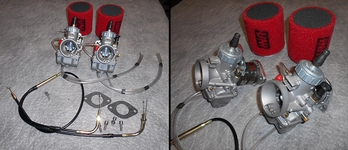 (1¾"), twin VM34mm Mikuni carburetors, K&N air filters, on a